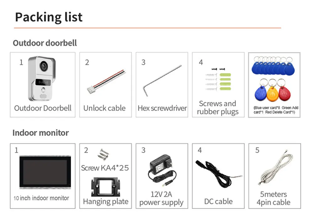 WI-FI видеодомофон система не означает, что вам не нужно провода кабеля. Монитор поддерживает WI-FI сети (только для подключения с 2,4 ГГц маршрутизатор band), но внутренний монитор и дверной звонок проводной.