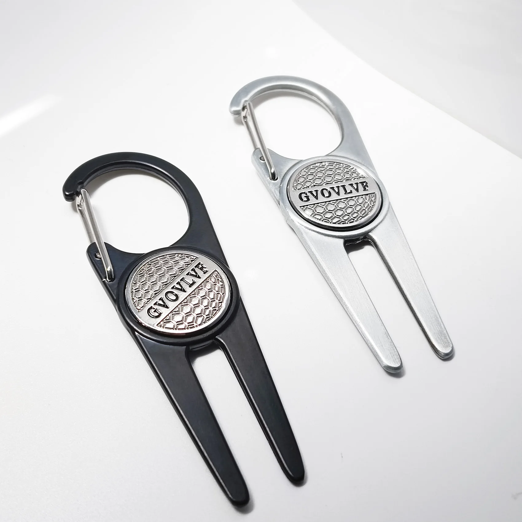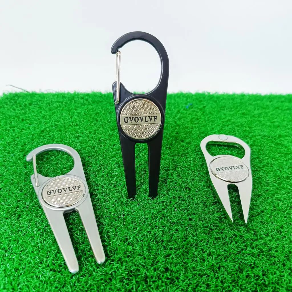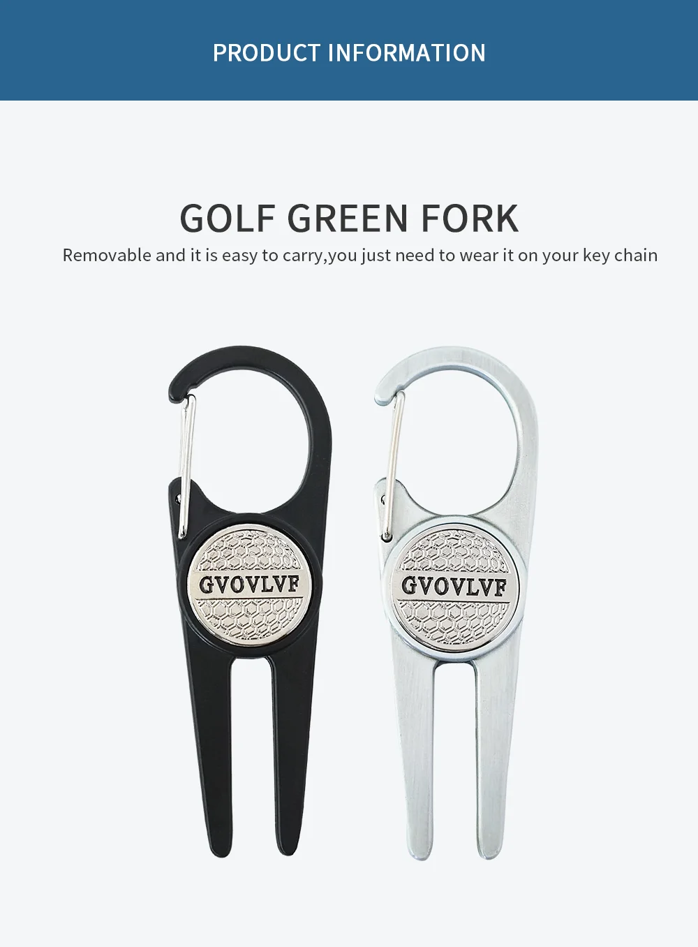 Портативный инструмент для ремонта гольф-дивота Очиститель канавок Гольф Матовый эффект Вилы серебристый и черный с застежкой GVOVLVF Golf Mark