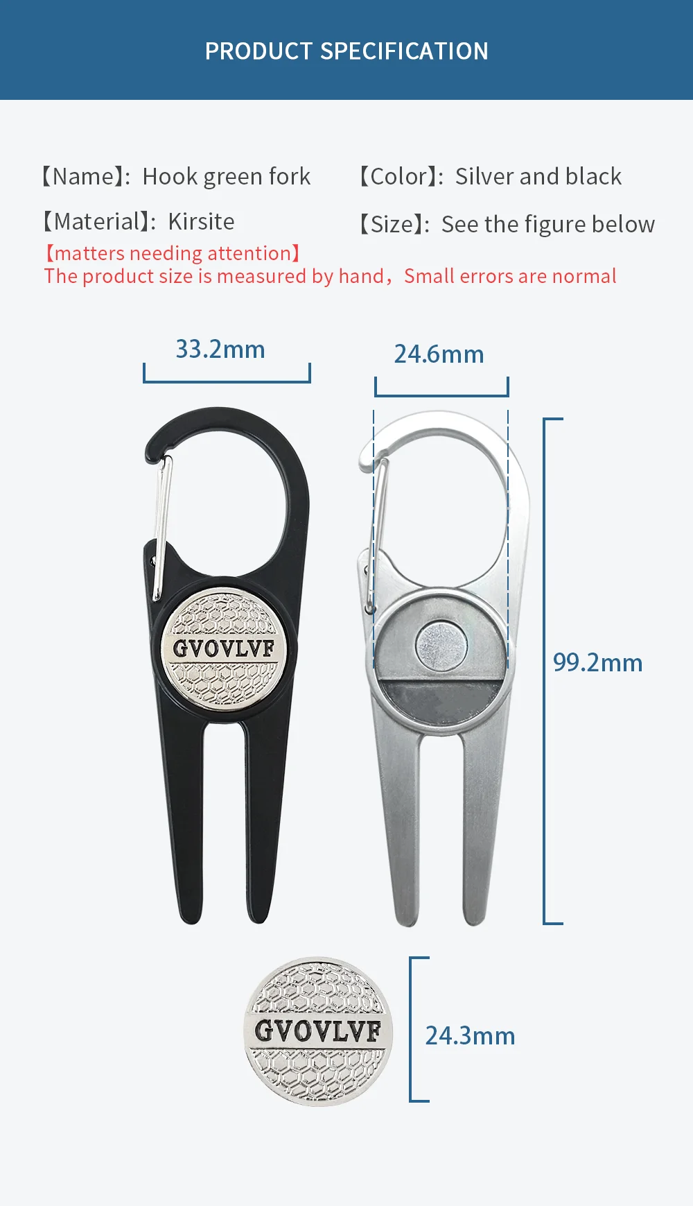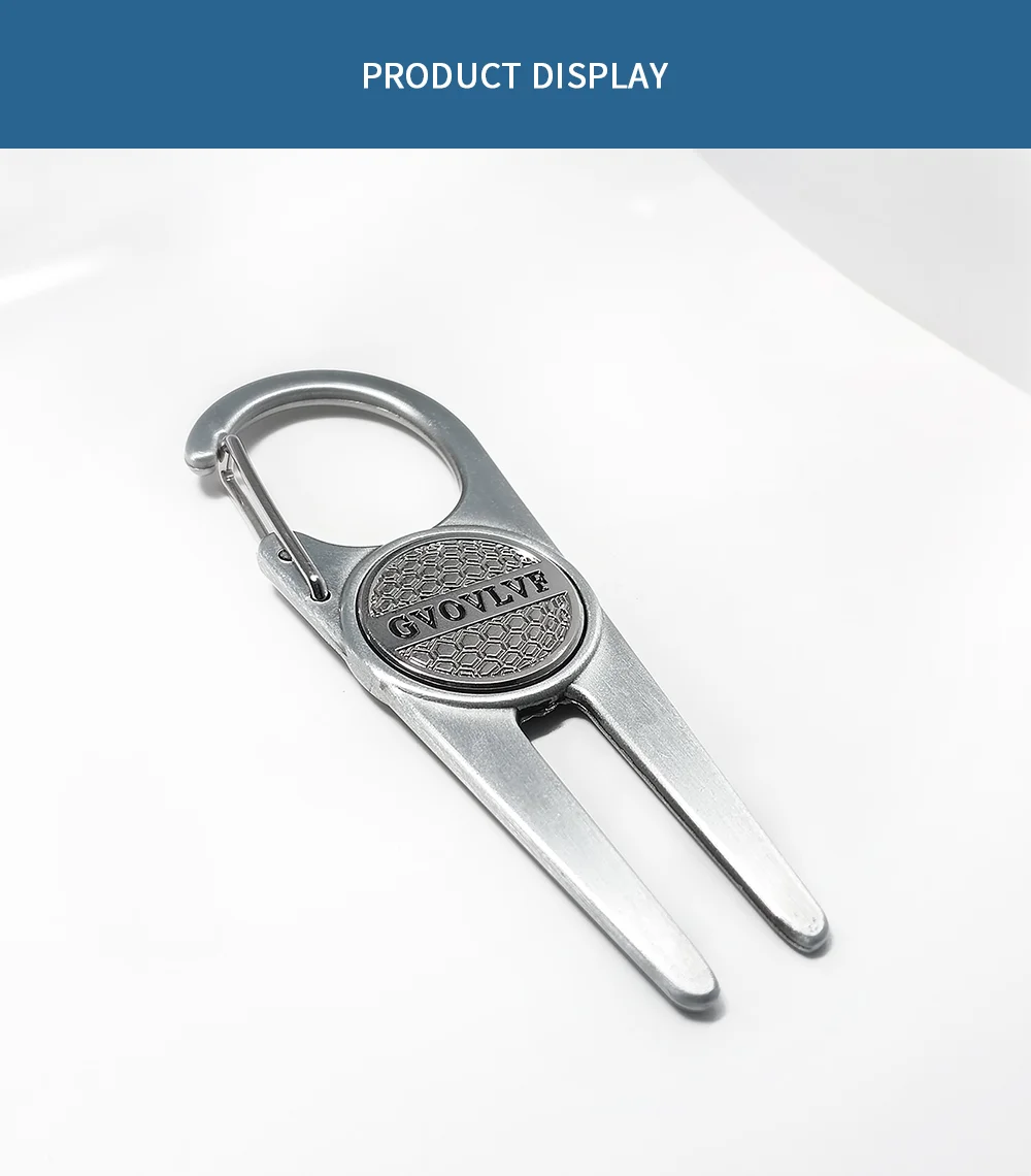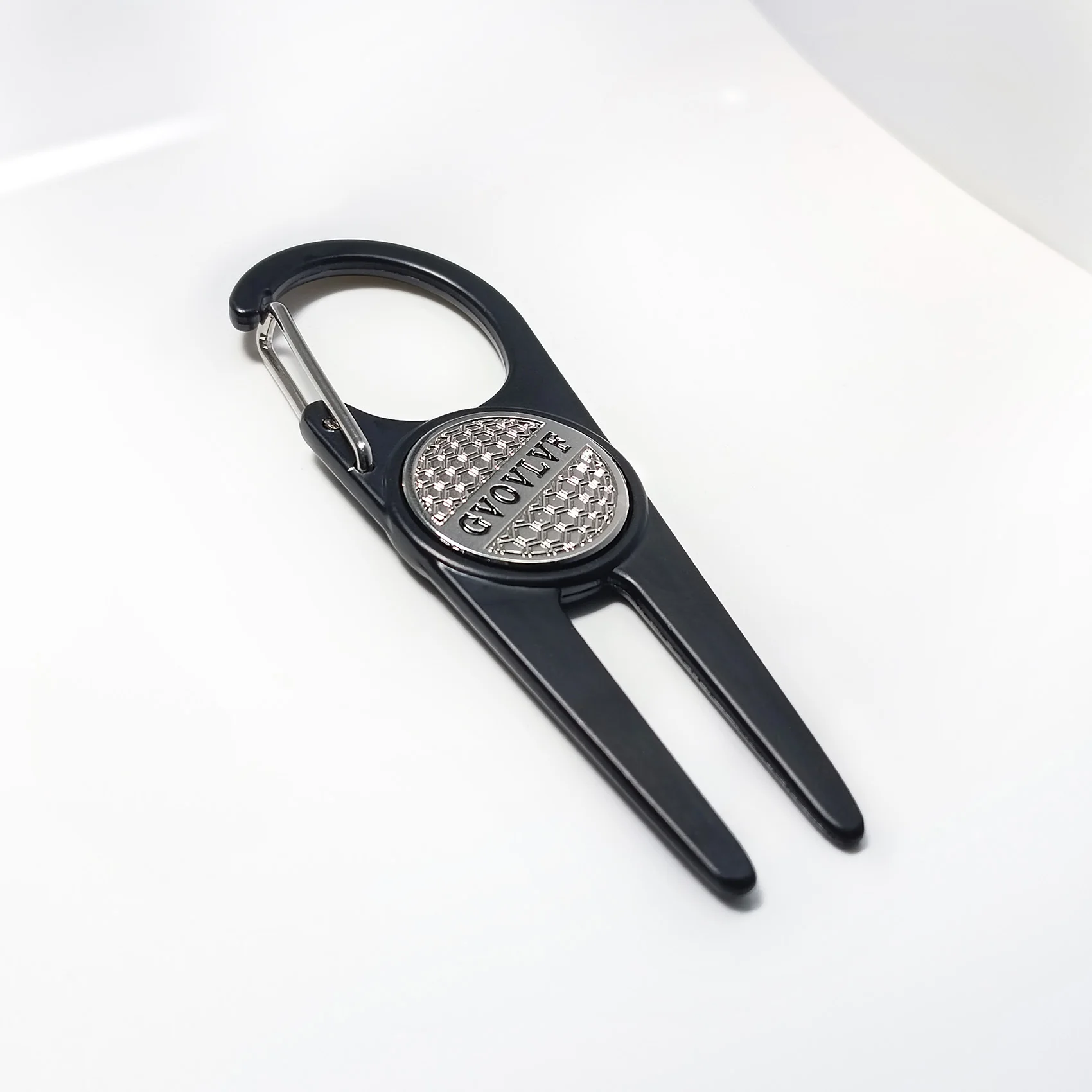 Портативный инструмент для ремонта гольф-дивота Очиститель канавок Гольф Матовый эффект Вилы серебристый и черный с застежкой GVOVLVF Golf Mark