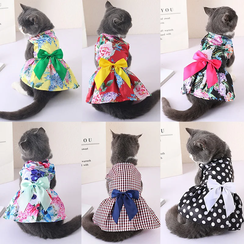 Одежда для щенков, тонкие юбки, костюм кошки, Необычные Юбки для домашних животных, с бантом, с большим цветком, без рукавов, Классическая Летняя одежда