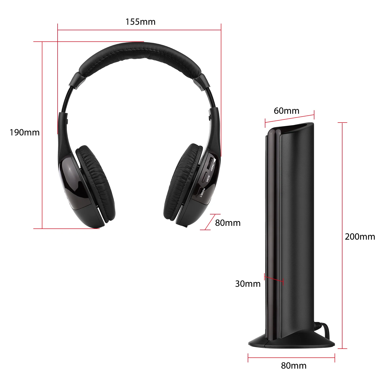 Беспроводные наушники: беспроводной прием с любого электрического устройства с аудиовыходом, например, полноканальным ТВ-звуком, ПК, игровым плеером, CD/DVD/VCD-плеером, аудиоустройством и mp3-плеером, больше не беспокойтесь о беспокойстве других.