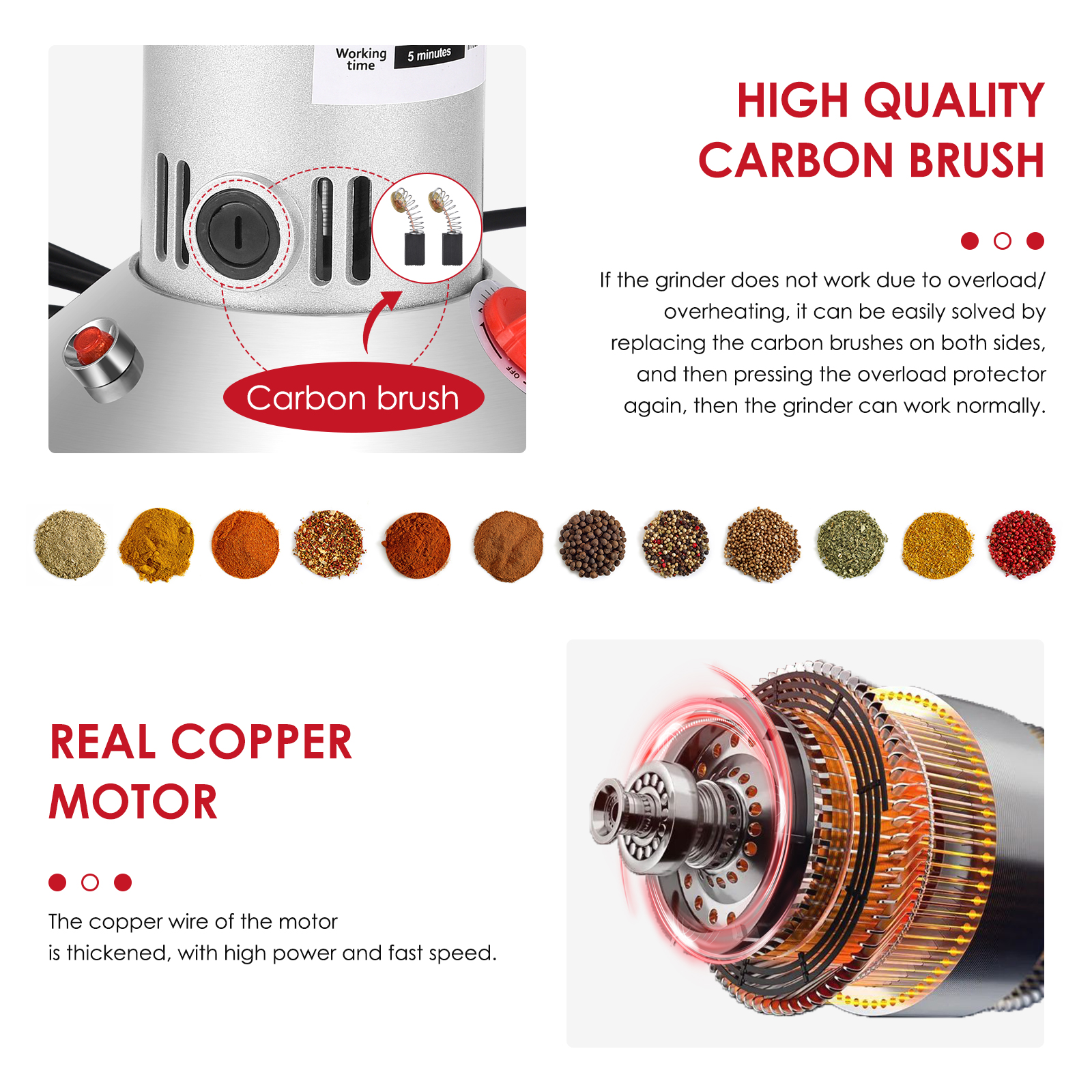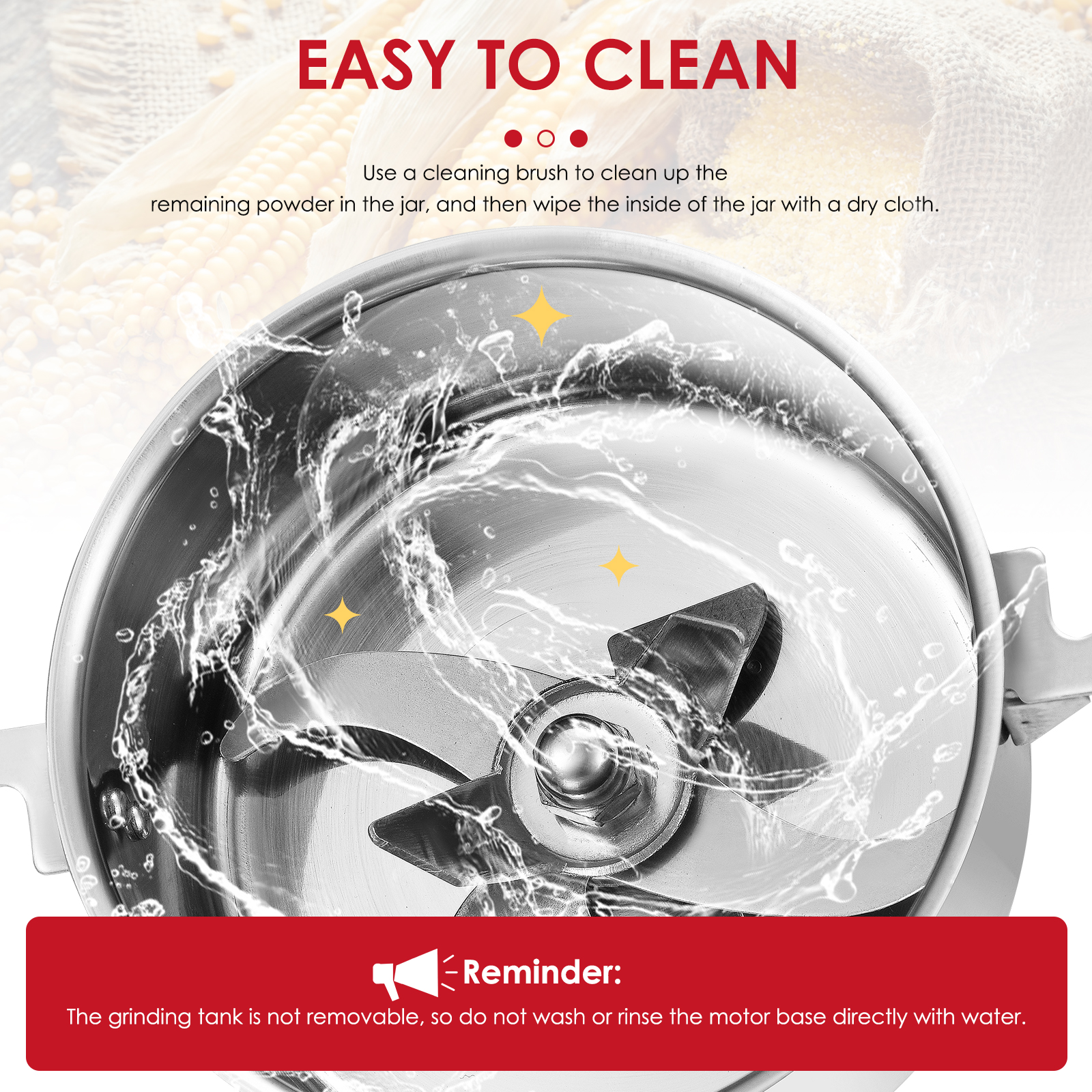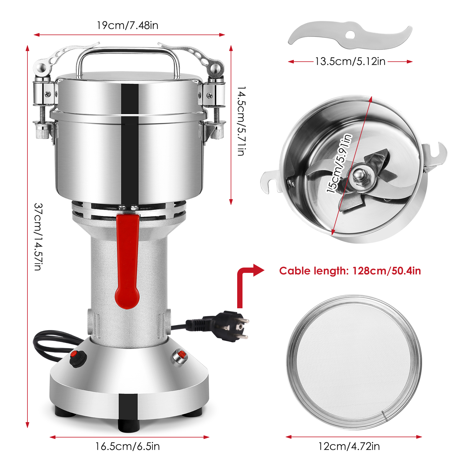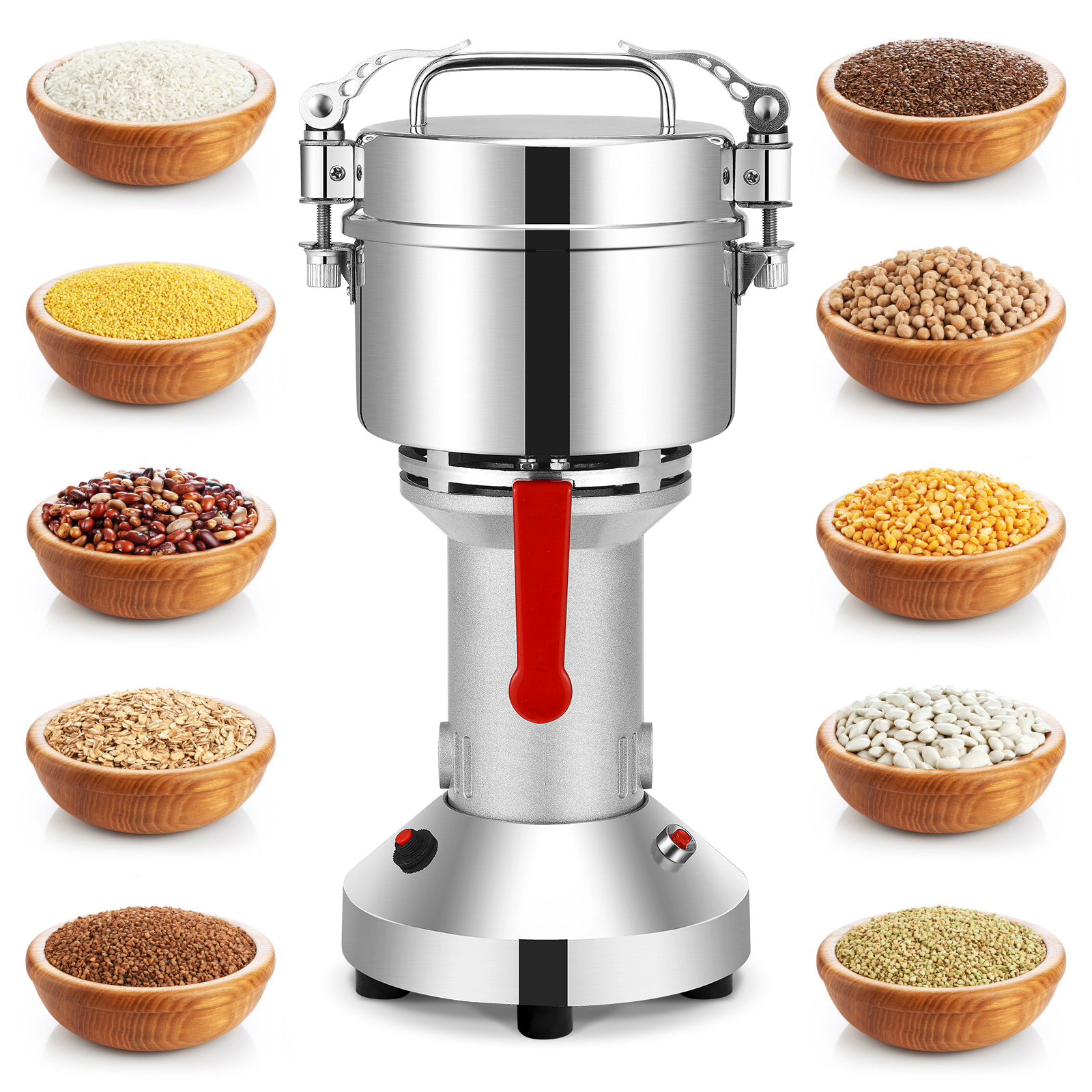Это высокое качество нержавеющей стали высокоскоростной кофемолка имеет привлекательный дизайн, маленький размер, легкий вес, высокая эффективность и простота в использовании. Ждать. Он может быстро убивает все виды питания, риса, кукурузы, кунжута, соевых бобов, корм для рыб, перец, медицина (например, ganoderma, солодка, с искусственным жемчугом и камнями и т. д.).