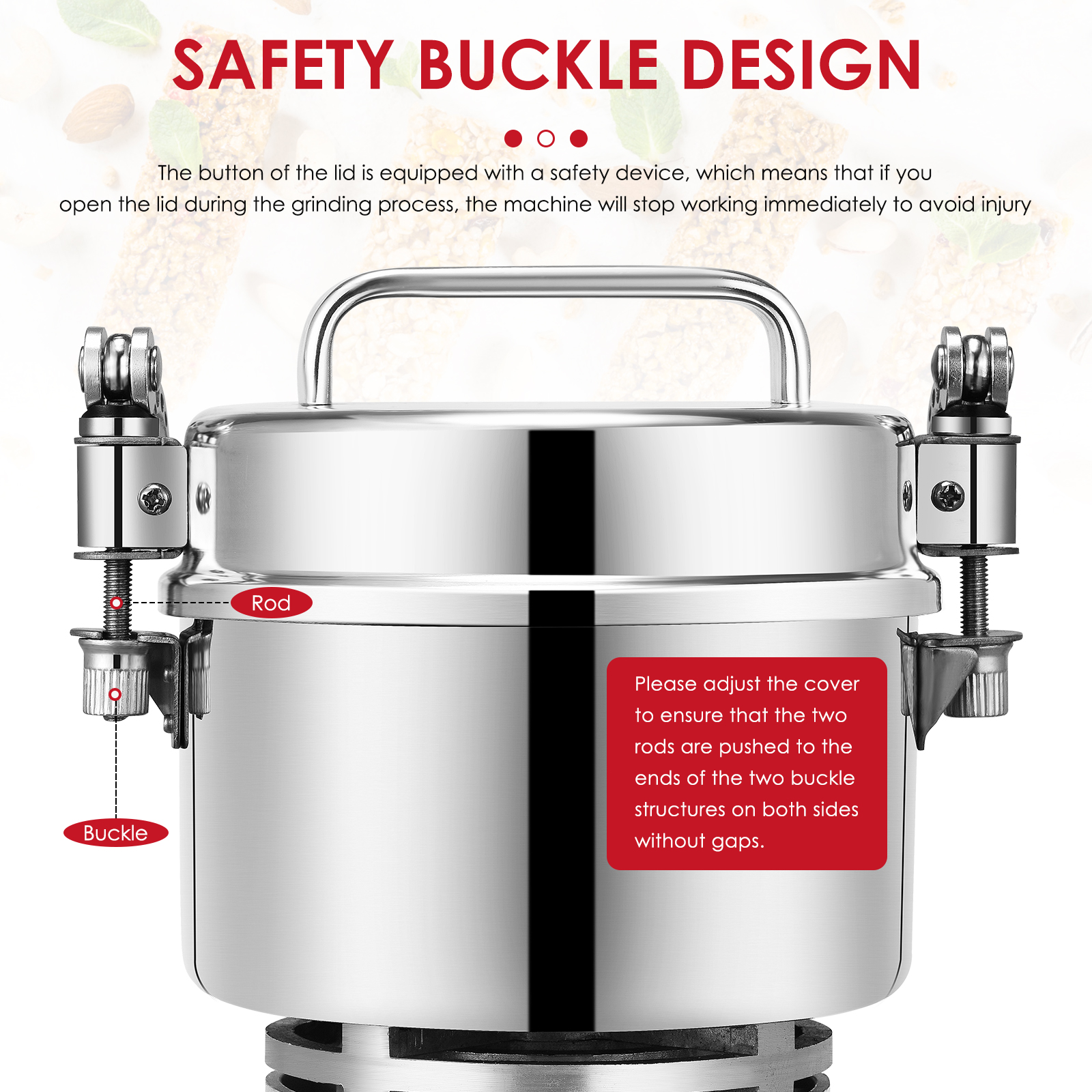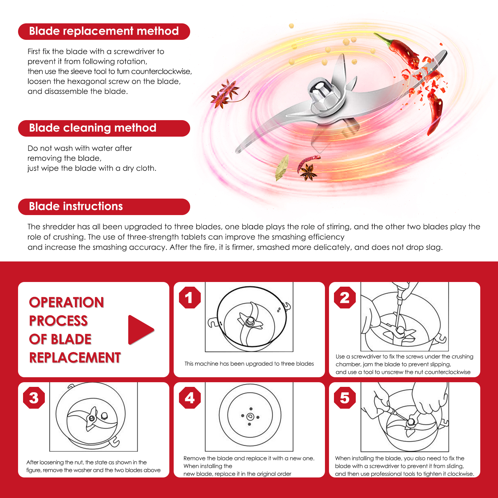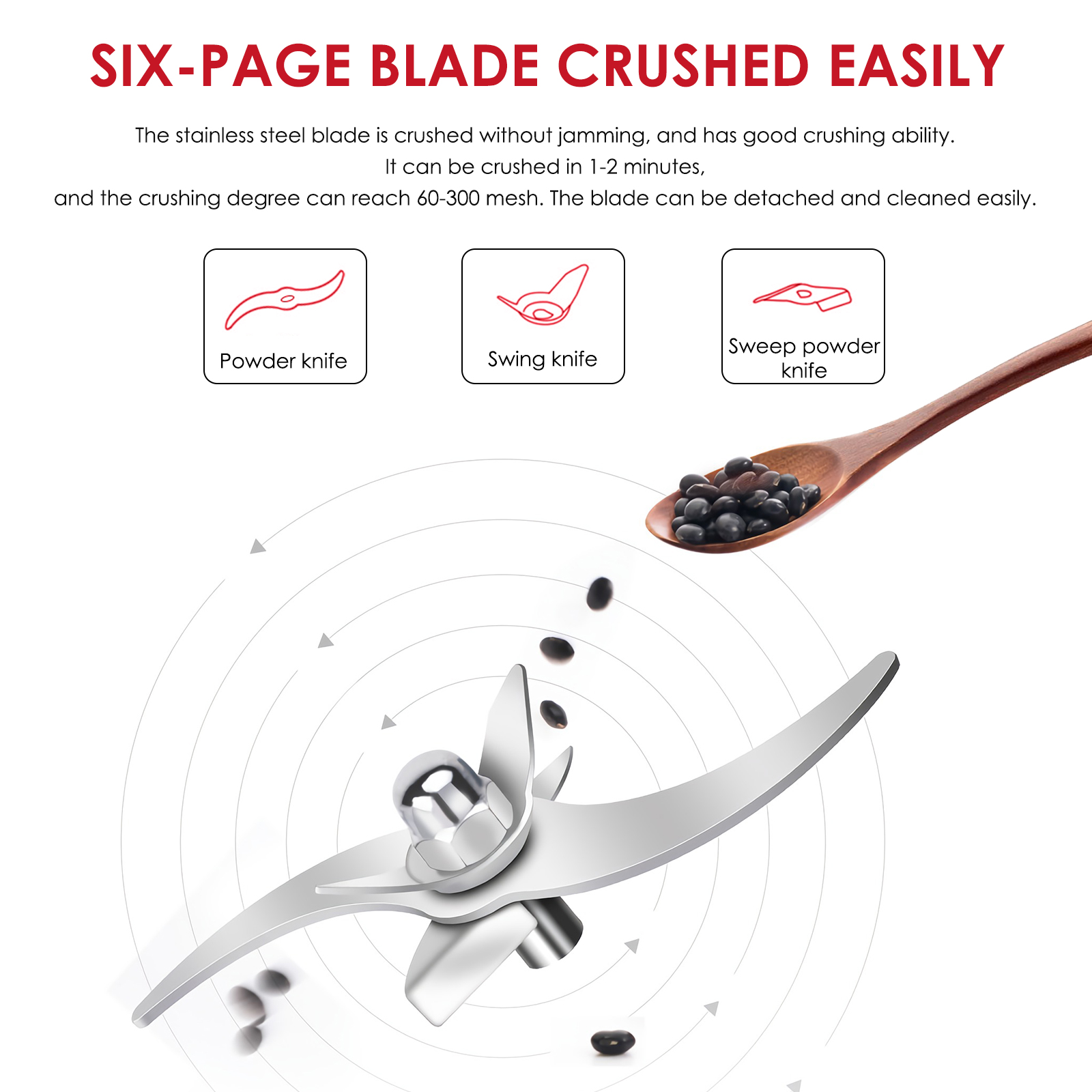 3. Хорошая герметизация, высокобезопасные крепежные гайки, трехслойная стойка из нержавеющей стали с лезвием из нержавеющей стали, круглые шлифовальные, полный шлифовальный. Он может быть измельчены в мелкий порошок в течение 1 минуты. Это может помочь вам с качественной натуральной для приготовления пищи, кулинарные и домашней кухни.