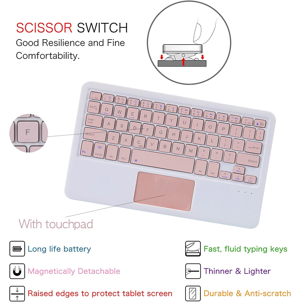 Клавиши клавиатуры имеют ножничную структуру, а квадратные шоколадные колпачки эргономично разработаны. С этой клавиатурой вы можете спокойно печатать на планшетах, Ipad, Iphone и смартфонах, предоставляя вам удобный и приятный опыт ввода текста.