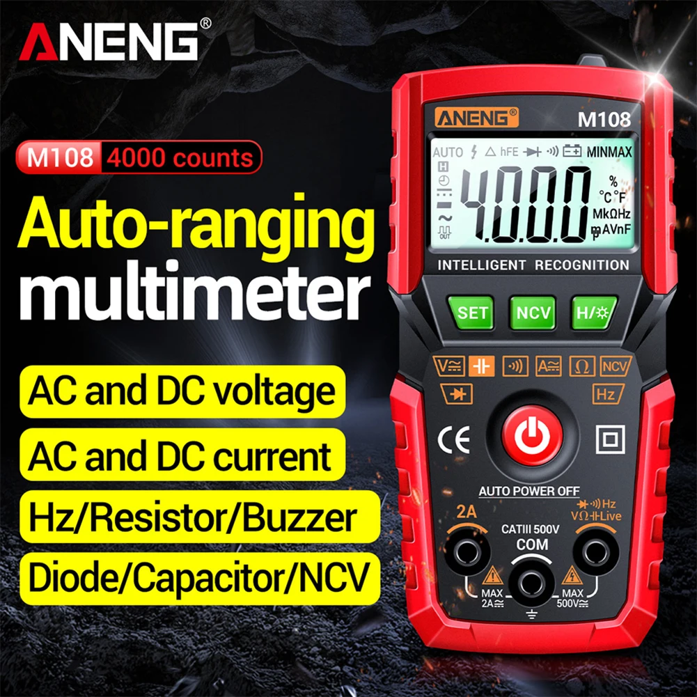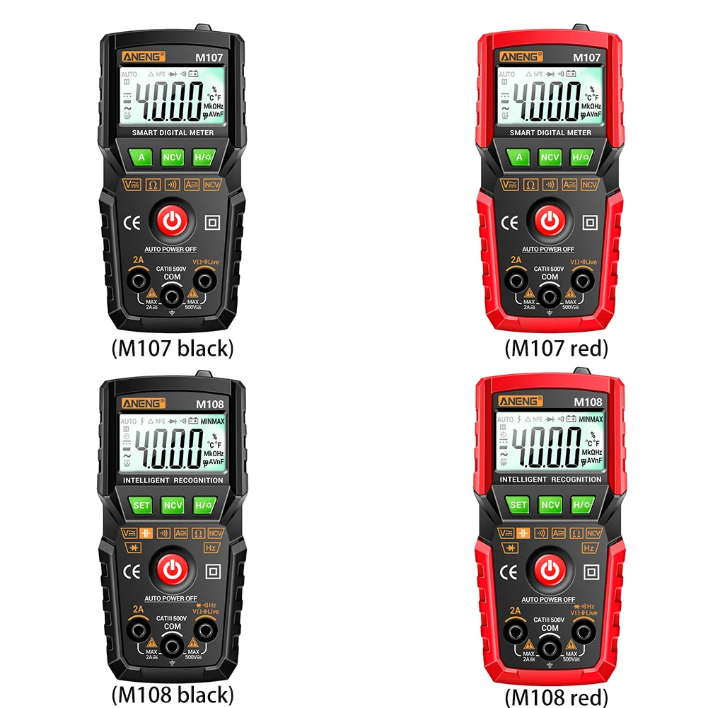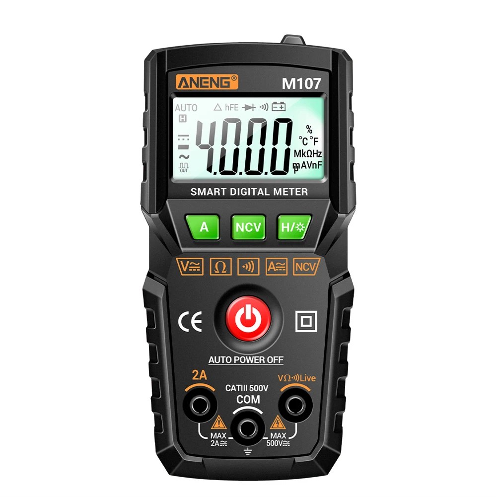 ANENG M107/M108 Высокая точность 4000 отсчетов Умный Цифровой мультиметр ЖК-дисплей сопротивление NCV Портативный DC AC напряжение измеритель тока