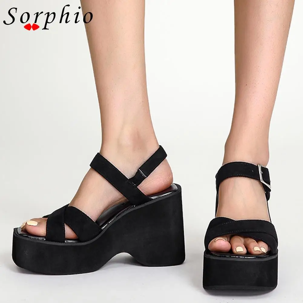 Женские босоножки на танкетке и платформе с пряжкой и ремешком; Лидер продаж; Летняя обувь с открытым носком; Женская обувь; Новинка 2022 года; Модные удобные брендовые туфли
