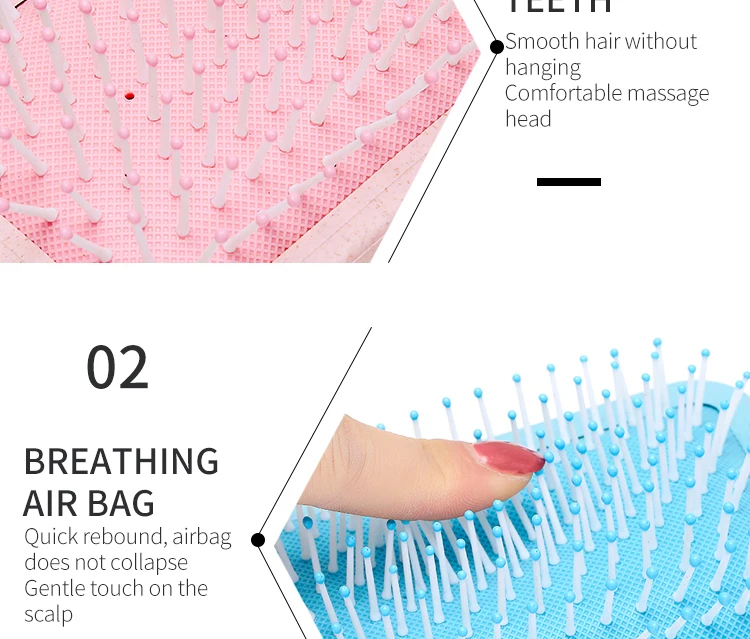 2. Ручка, гибкие щетинки уменьшают наличие расколов, распутывают узел, не связывают щетку для волос, легкий и нежный способ отсоединить волосы.
