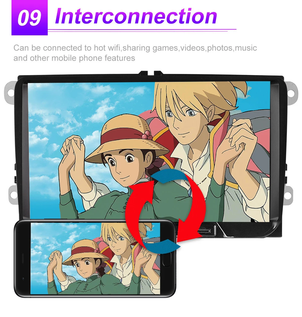 9 дюймов G + сенсорный экран; Поддержка мультитач; Высокое разрешение с 1024x600 пикселей