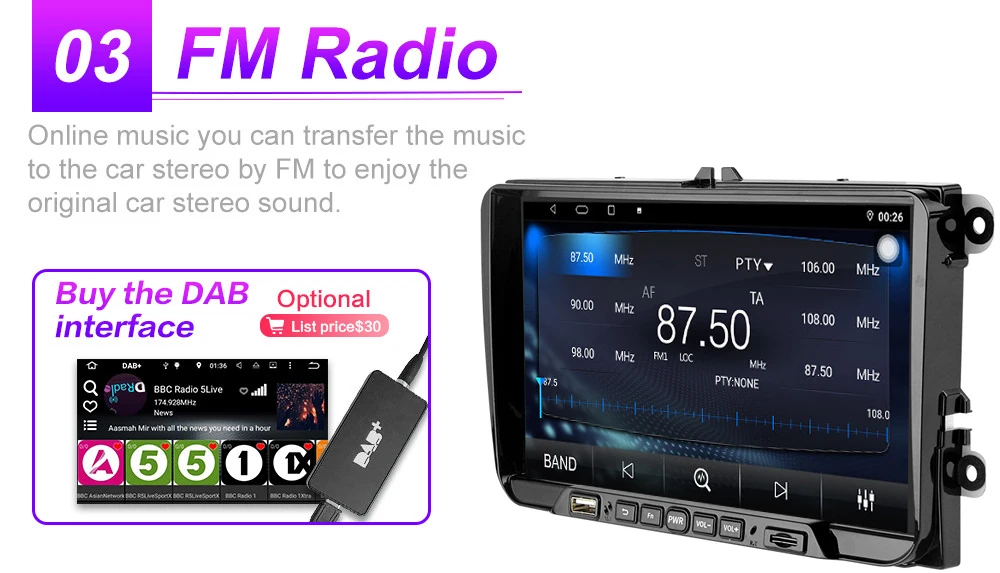 Функция FM AM: автоматический режим поиска каналов, полуавтоматический и точный метод регулировки. Слушайте музыку, новости и информацию о дорожном движении, наслаждайтесь путешествием