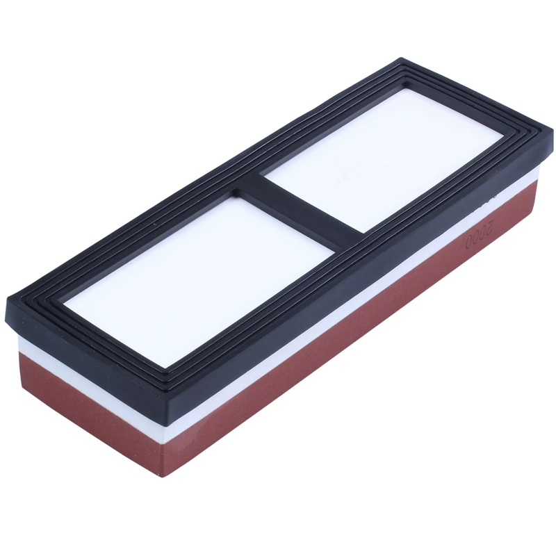Сочетание зернистых 2000 & 6000 острых камней: 2000 зернистости для тонкой хонинга и 6000 зернистости для достижения лезвия с острым лезвием бритвы. Достаточно большой, чтобы обрабатывать даже самый длинный кухонный нож, и предназначен для тонкой настройки любого лезвия
