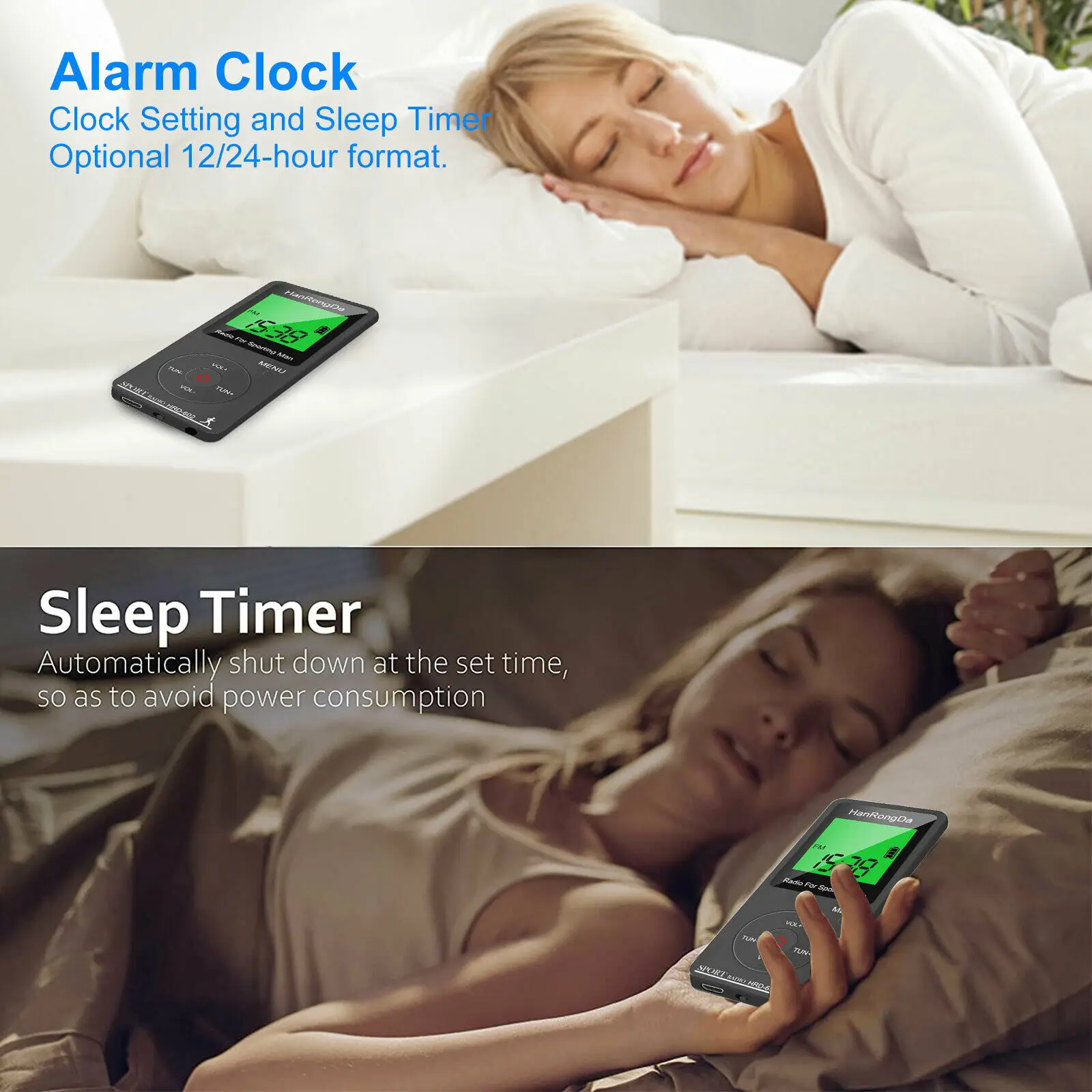 -Настройка часов и таймер сна, дополнительный формат 12/24 часов, Установите часы радио в соответствии с местным временем, удобно и быстро просматривать время. Благодаря функции таймера сна вы можете настроить воспроизведение радио на определенное время, а затем отключить его самостоятельно (10-90 минут по желанию).