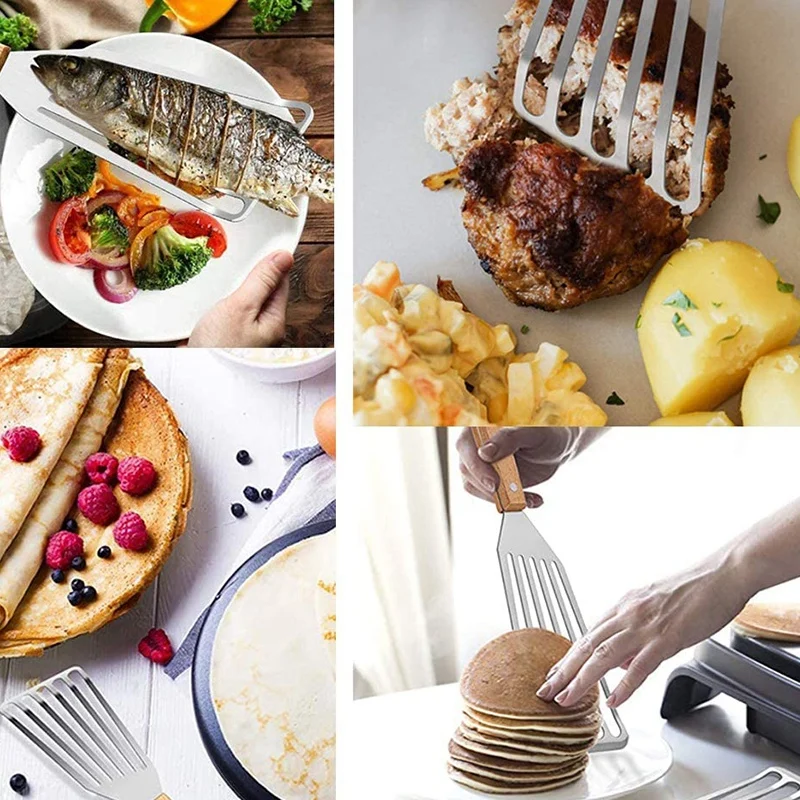 Посылка включает в себя 2 рыбных ЛОПАТКИ с деревянной ручкой, идеальный инструмент для приготовления пищи для вашей кухни. Размер кухонного шпателя подходит для приготовления пищи с помощью посуды или формы для выпечки. Кухонные лопатки для рыбы имеют отверстия в ручке для удобного подвешивания и хранения.