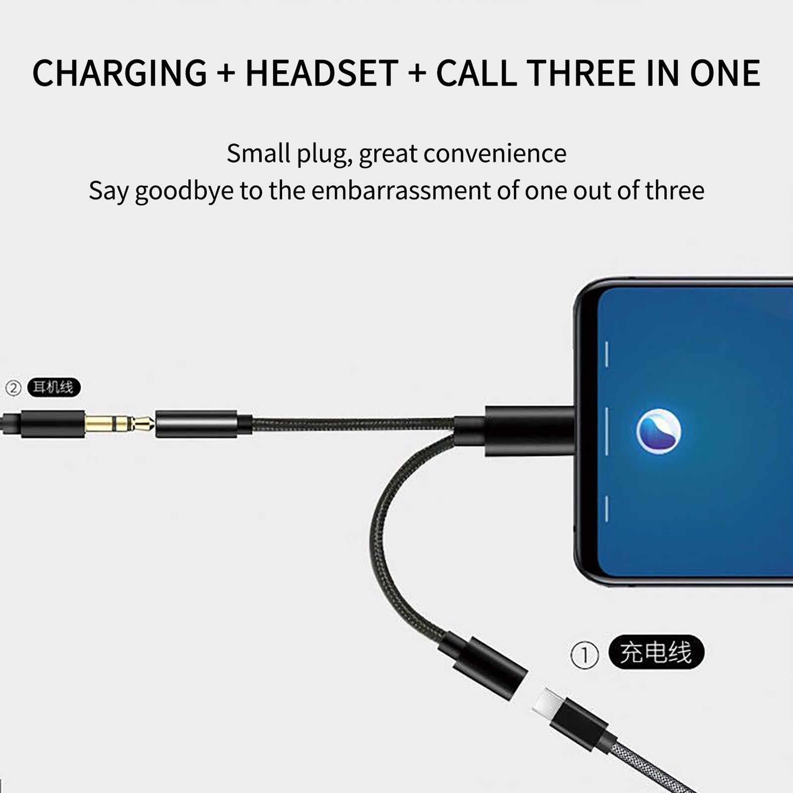 2 в 1 кабель для передачи данных поддерживает одновременную зарядку и аудиовыход, позволяя