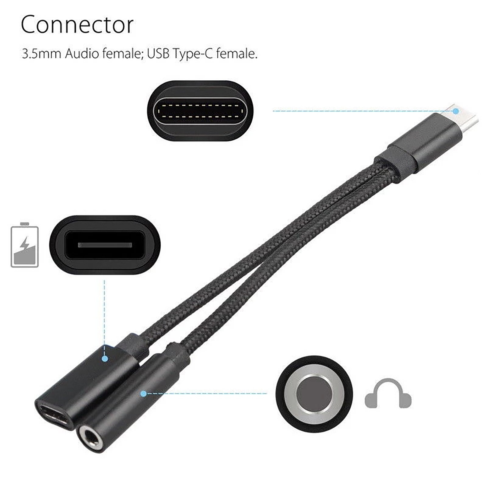 Тип C-Тип C + 3,5 мм зарядки аудио адаптер 2 в 1 с разъемом