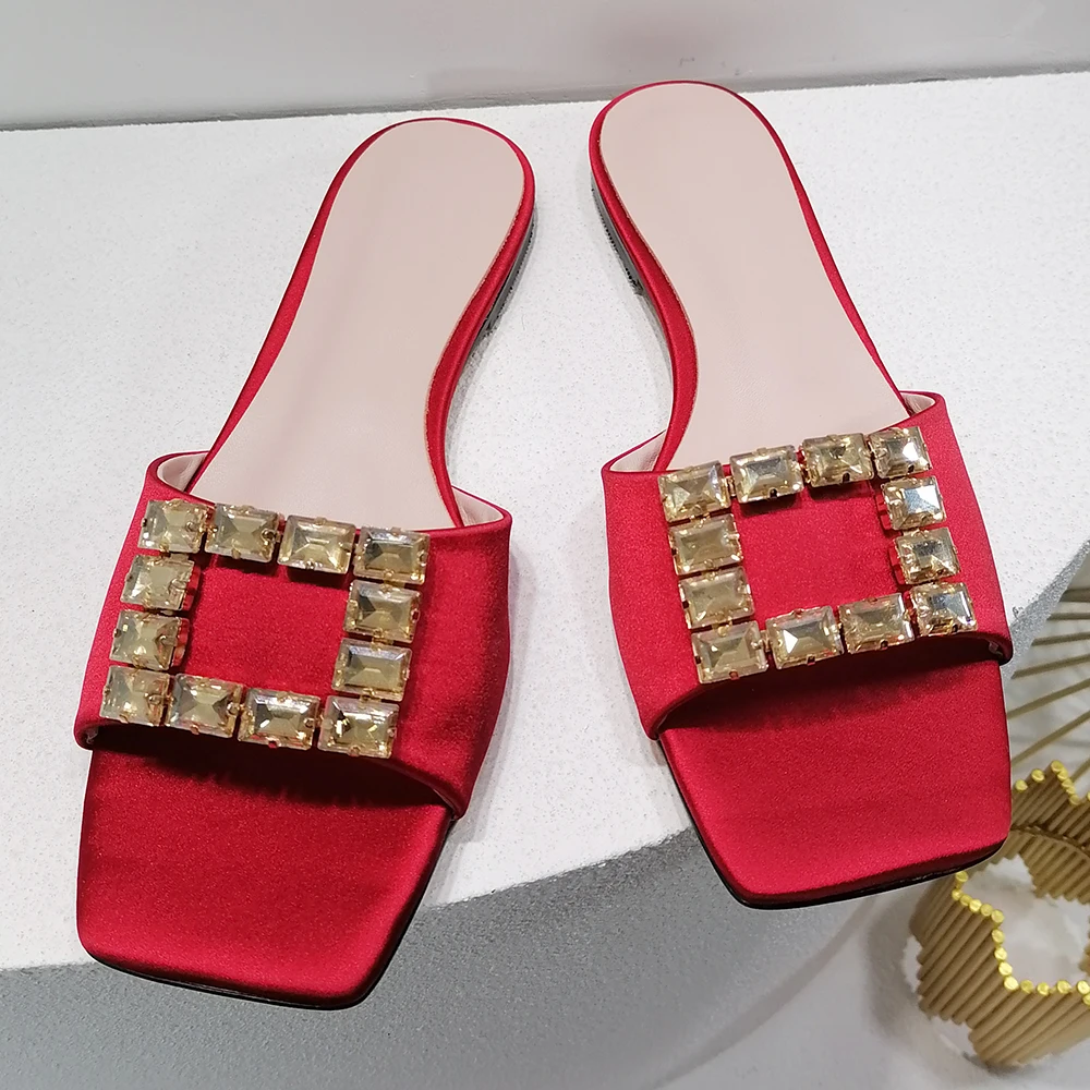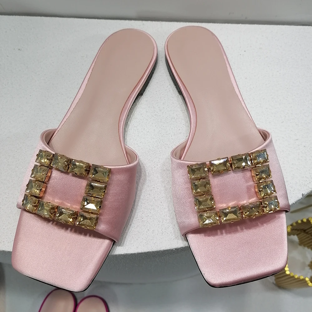 Цена по прейскуранту завода; Коллекция 2022 года; Новейшая модель; Женская обувь больших размеров; Летние повседневные Элегантные вечерние женские тапочки на плоской подошве с квадратным носком