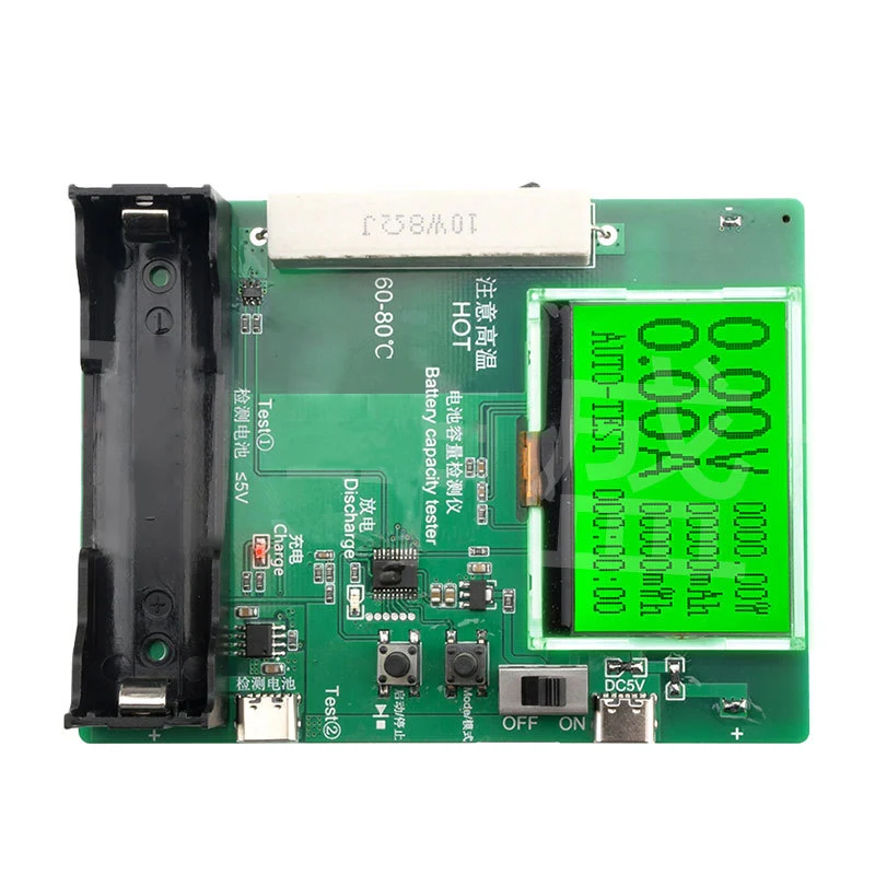 Этот продукт представляет собой тестер емкости аккумулятора 18650, который специально используется для измерения емкости аккумуляторов 18650. 1,77-дюймовый TFT дисплей может одновременно отображать информацию, такую как батарея внутреннее сопротивление, емкость, напряжение, ток, мощность, и т. д.; Утомительный операции зарядки и разрядки оборудования; установка трех режимов автоматической, зарядки и разрядки, после выбора соответствующего режима, запуск оборудования, и программа будет работать автоматически; Размер разрядного тока может быть изменен для удобства.