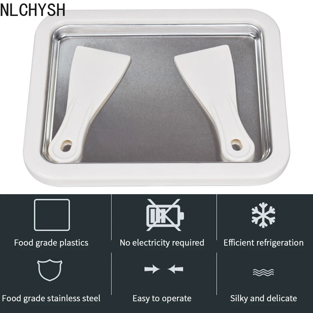 Простота в использовании: Просто налейте смешанные ингредиенты на быстрозамороженную поверхность сковороды, затем выложите и поверните, пока не образуется мороженое.