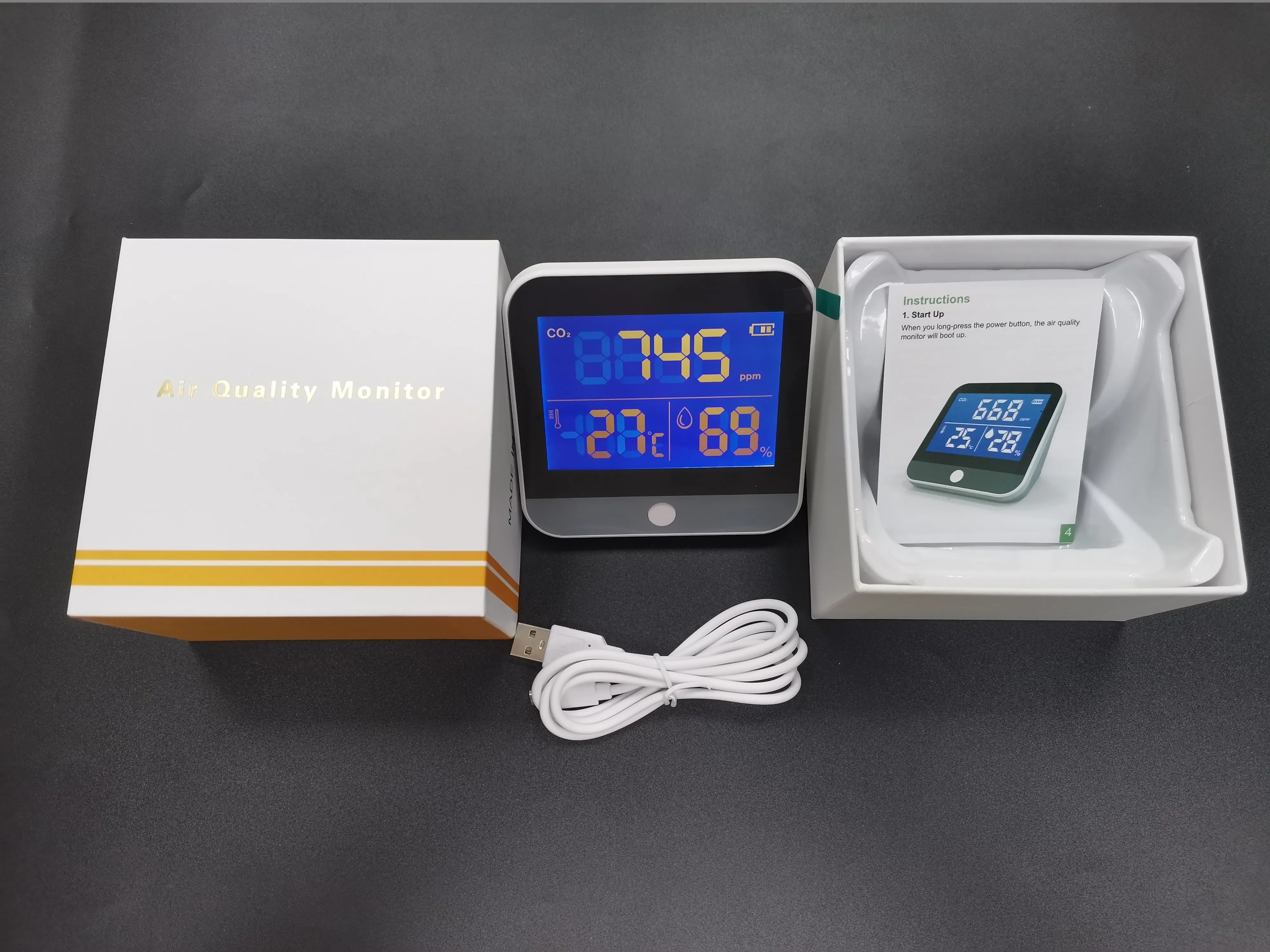 Качество воздуха очень важно для нашего здоровья, поэтому вам нужен детектор качества воздуха для улучшения качества вашей жизни, этот продукт может обнаружить CO2, температуру и влажность для вас, он сочетает в себе датчики мониторинга в реальном времени углекислого газа (CO2). Температуры и влажности на дисплее. Вы можете использовать его в своем доме, на открытом воздухе или в любом месте, приходите и попробуйте. Вы не будете разочарованы этим.