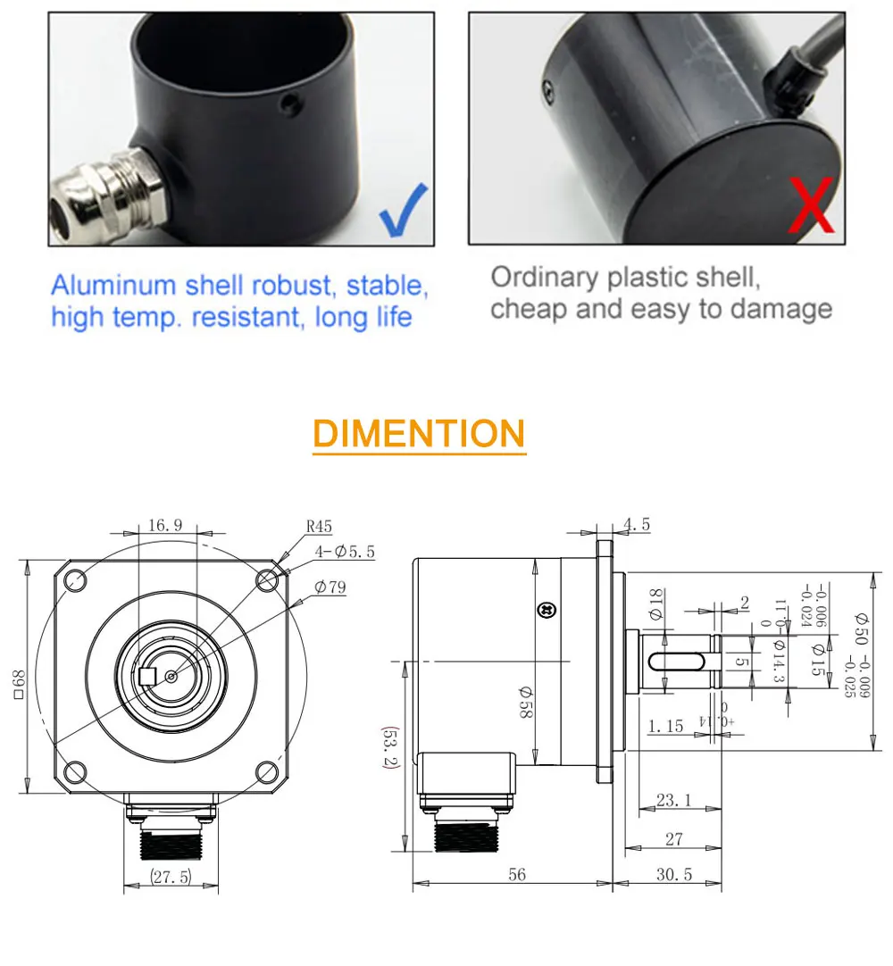 CHBG 58 мм инкрементный роторный кодер 15 мм фланцевый вал фотоэлектрический оптический переключатель AB 2 фазы 10-1024-2048-3600 PPR 5-24VDC
