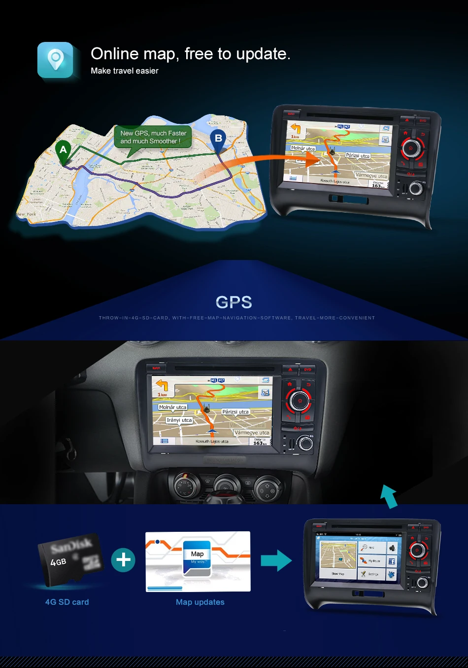 Камера заднего вида, встроенная карта (карта встроена, нет необходимости в sd-карте) Бесплатный внешний микрофон, Бесплатный Canbus (некоторые автомобили не нужны)