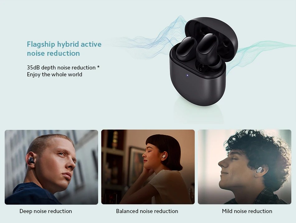 * Глубина шумоподавления достигается благодаря активной технологии шумоподавления, которая поддерживает максимальную глубину шумоподавления 35 дБ и может уменьшить фоновый шум до 98%. Данные испытаний получены из китайской академии метрологии. Фактический эффект варьируется в зависимости от размера ушей, выбранных беруши, структуры ушного канала, осанки, жевания, физических упражнений и других условий.