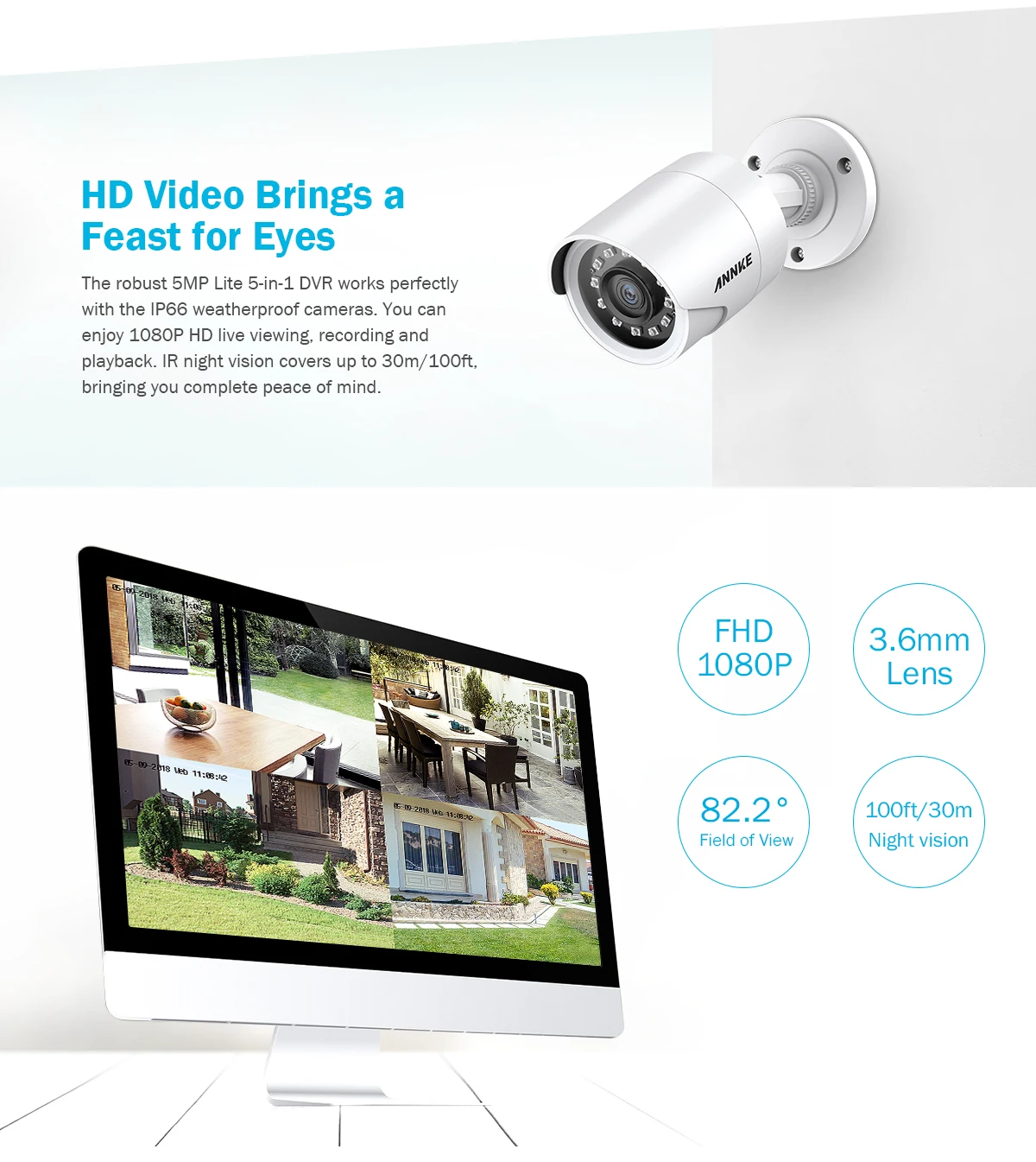 Камеры ANNKE 5MP + 2MP/5MP 4 шт/8 шт