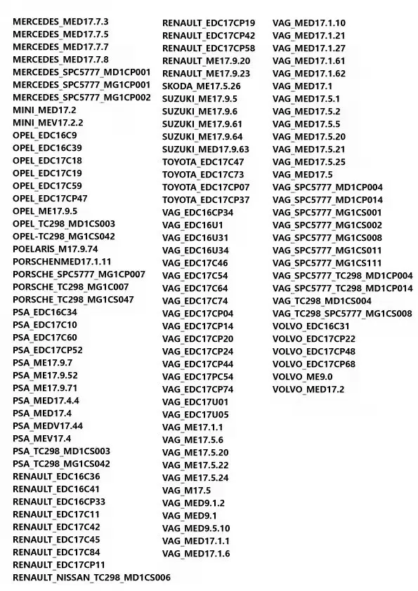 Настольный инструмент Ecu в настоящее время поддерживает(KTM FLASH 67IN1 не поддерживает их):