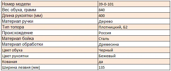 Кованый топор тип Б2 с рабочей частью весом 840 г и деревянным топорищем 400 мм, вес в сборе 1070 г, рассчитан на бытовое использование. Инструмент с небольшим прямым лезвием позволяет выполнять рубку и тесание древесины любых пород.