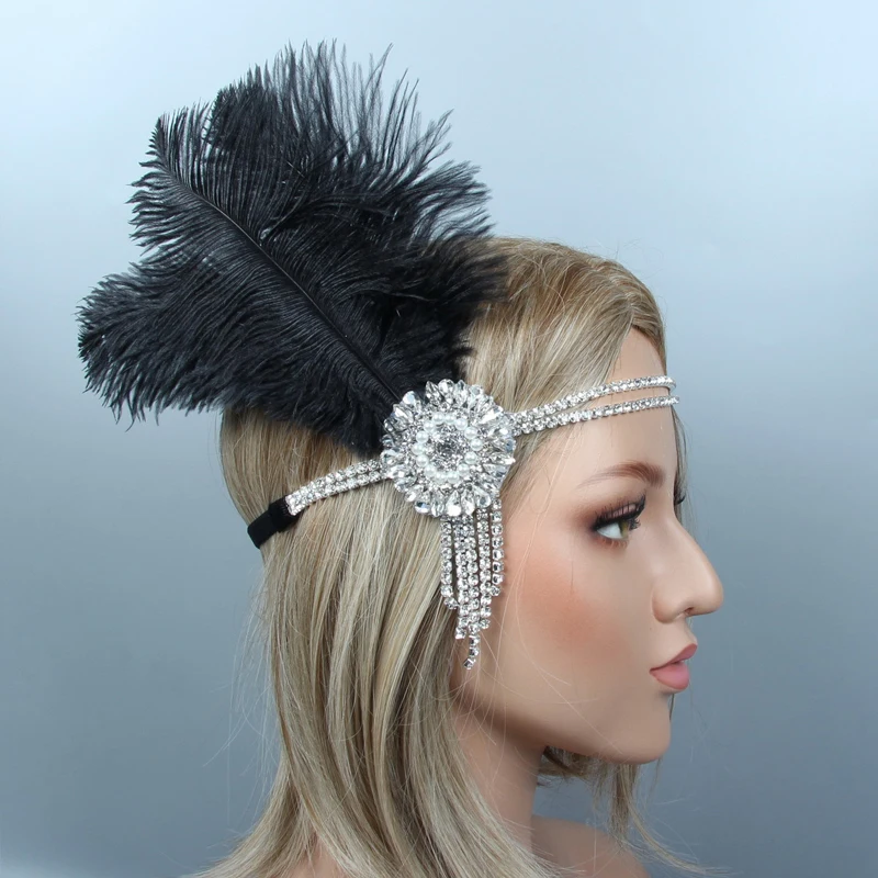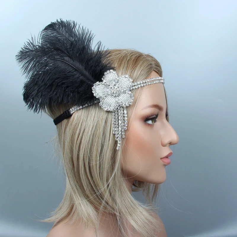 Украшены блестками/бусинами/стразы. Эластичная головка, подходит для большинства Окружностей головы Материал: перо + эластичная лента Цвет ремешка: черный/белый посылка включает: головной убор-1 шт.