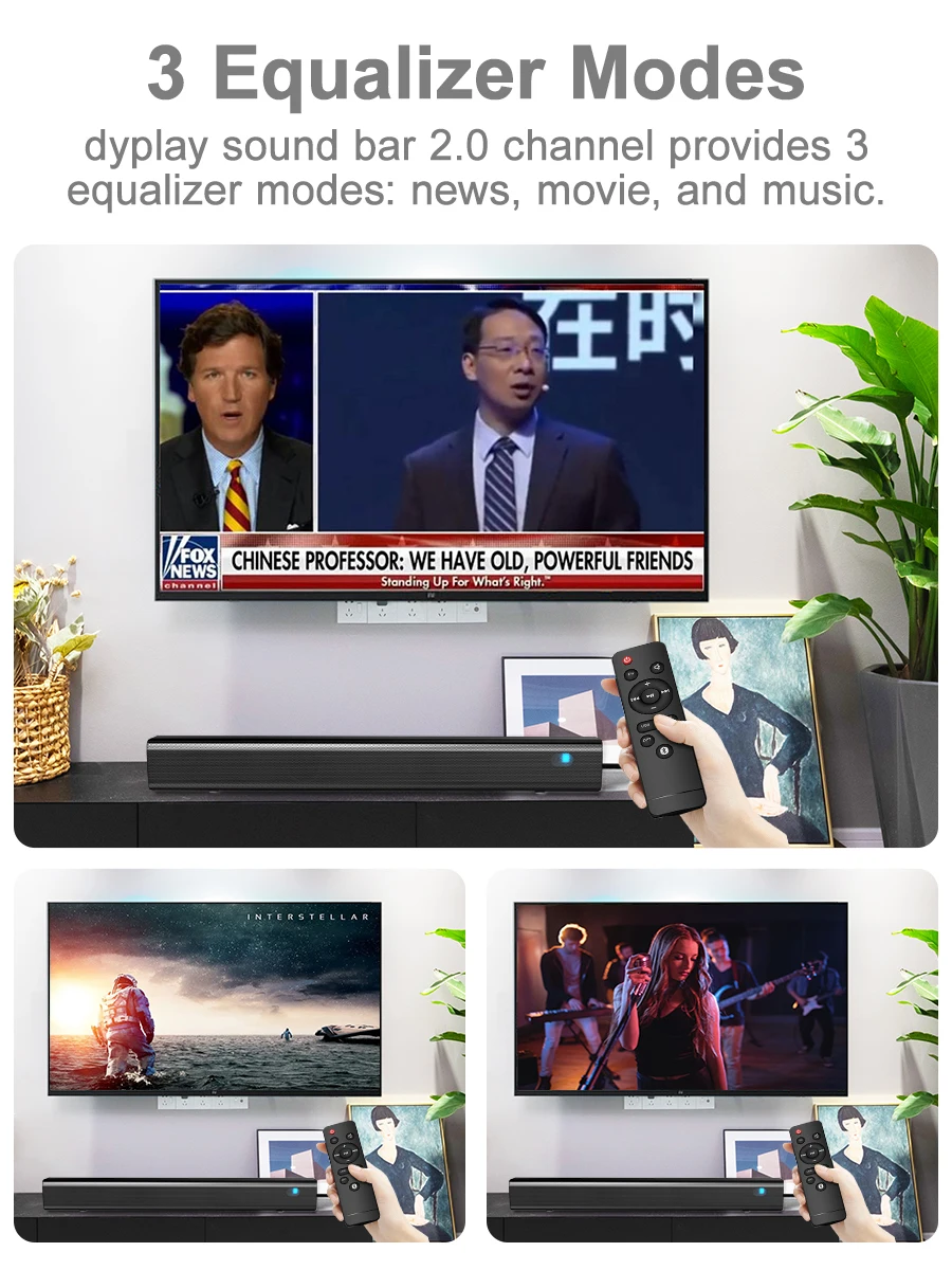 4. После подключения звуковая панель с реверсивным звуковым, пожалуйста, установите режим звуковая панель с реверсивным звуковым одного и того же режим в качестве ТВ-выход. Во избежание проблем, в результате чего не в состоянии для того чтобы произвести звук.