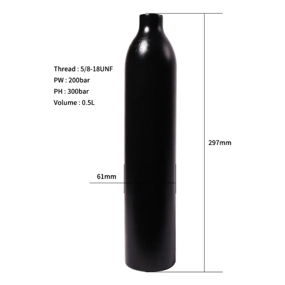 Давление в алюминиевом баке: 3000 PSI (стандарт 200 бар, предел 300 бар)