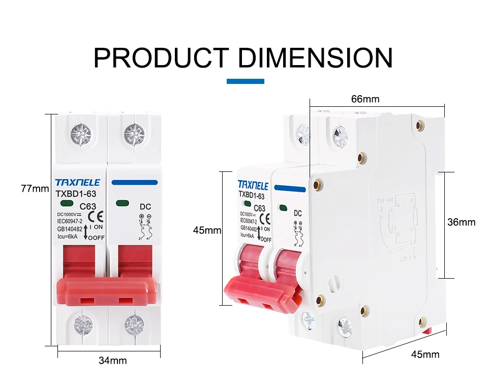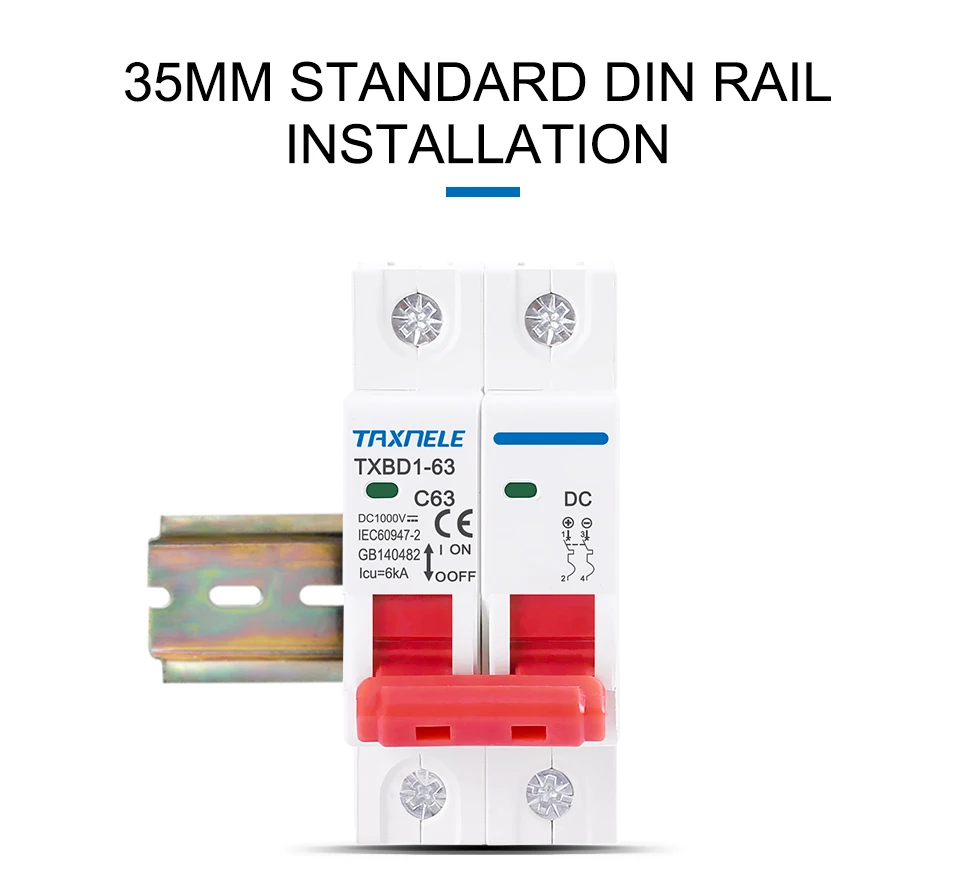 Миниатюрный автоматический выключатель TXBD1-63 серии DC, он в основном используется для перегрузки и защиты от короткого замыкания в системе распределения постоянного тока и солнечной фотоэлектрической системе.