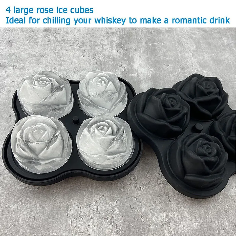 Четыре 2,5 дюйма (6 см) очень большой лед CUBE лоток. Наши Роза Форма для льда четыре 2,5 дюймов Роза формы большой кубик льда лоток за один раз. По сравнению с традиционными кубиками льда, размер этой формы кубика льда розы больше и плавит/разбавляет более медленно. Идеально подходит для охлаждения ваших коктейлей, старомодных, Бурбона, шотландского или смешанного виски, чтобы сделать Романтический напиток.