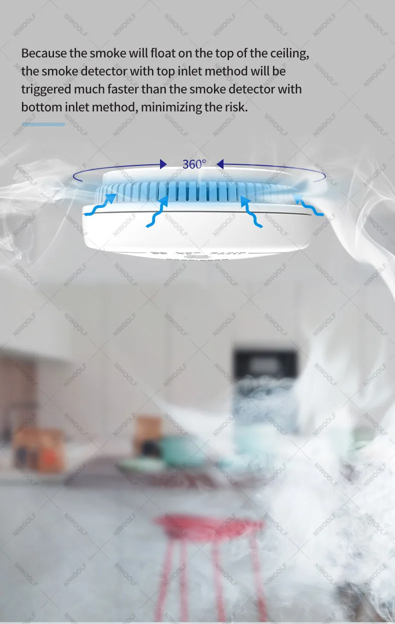 Потому что дым будет плавать на верхней части потолка, детектор дыма с верхним входом метод будет срабатывать гораздо быстрее, чем детектор дыма с нижним входом метод, минимизируя риск.