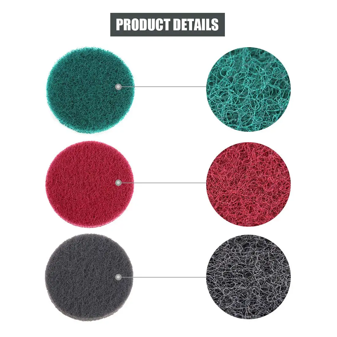 В этом наборе кистей для сверления 5 дюймов, в том числе 5 шт., не царапаются красные колодки (7447 #), 5 шт., средняя жесткость, коричневые прокладки (7447c #), 5 шт. жесткие зеленые прокладки (8698 #), 1 шт. крепление крюка с металлическим валом 1/4 дюйма (6 мм). 3 различных жесткости, чтобы удовлетворить ваши различные потребности в очистке.