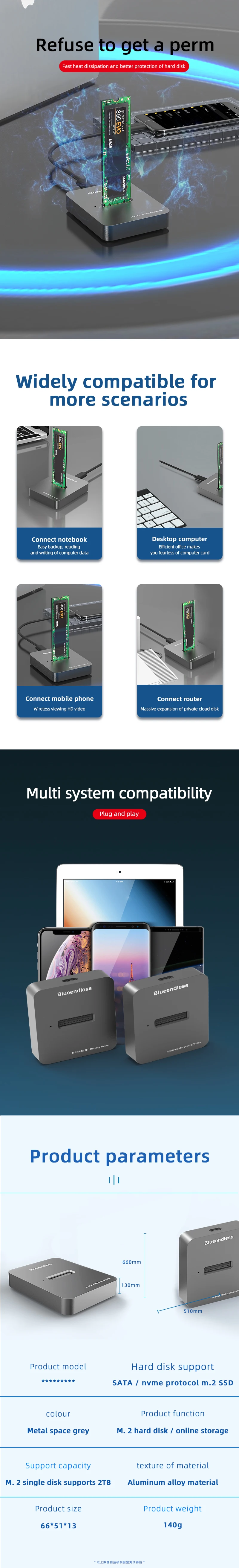 [USB 3,1 Gen 2 со скоростью до 10 Гбит/с] с новейшим USB 3,1 Gen 2, этот M.2 корпус для добавления внешнего хранилища данных к любому устройству, обеспечивает скорость чтения/записи данных до 10 Гбит/с, поддерживает 2 шт. M.2 (NVME) жесткий диск считывает и записывает одновременно.