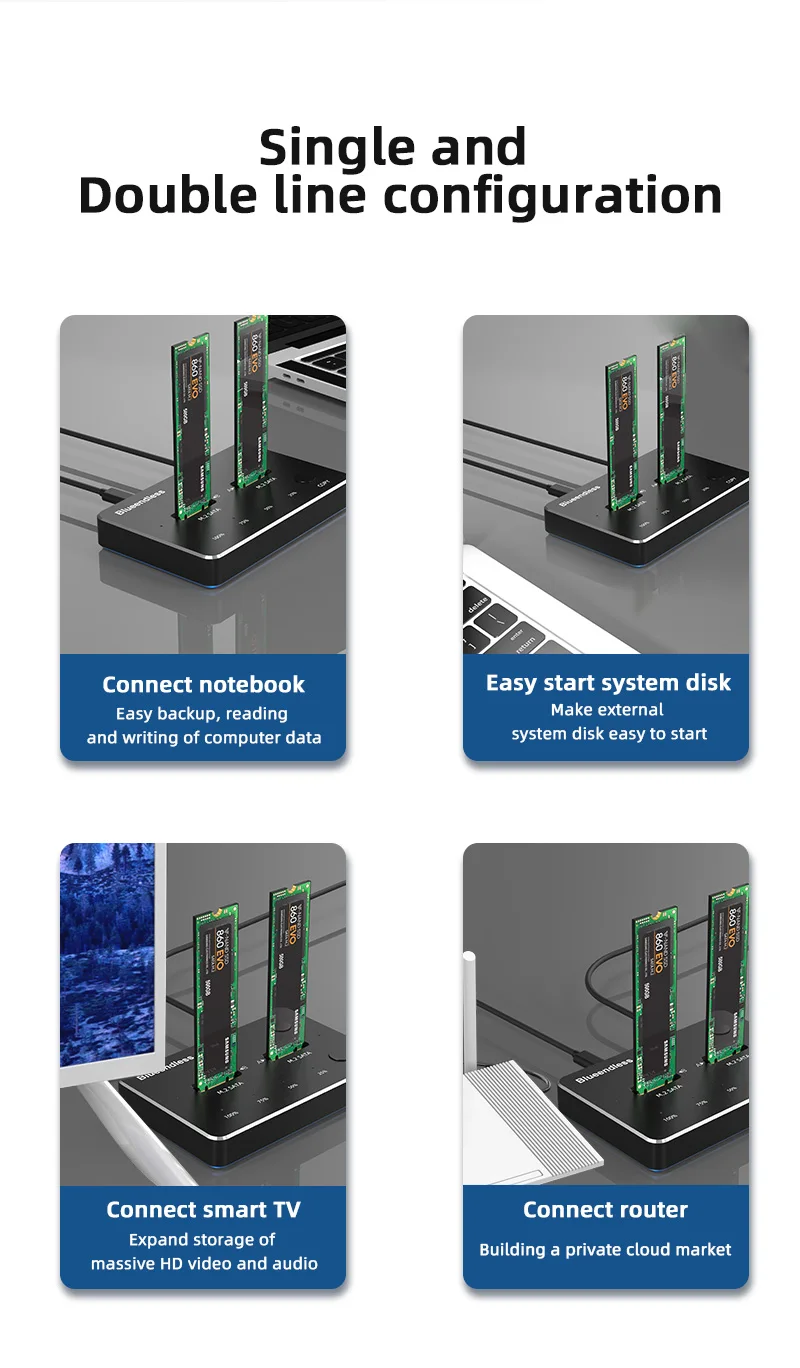 [Совместимость с NVMe PCIe M.2 SSD] Dual-Bay M.2 SSD HDD корпус специально разработан для M & M + B Ключ NVMe SSD PCIe, в том числе 2280/ 2260/2242/ 2230, поддержка до 4-х никель-металл-ТБ жесткий диск (один отсек 2 ТБ).