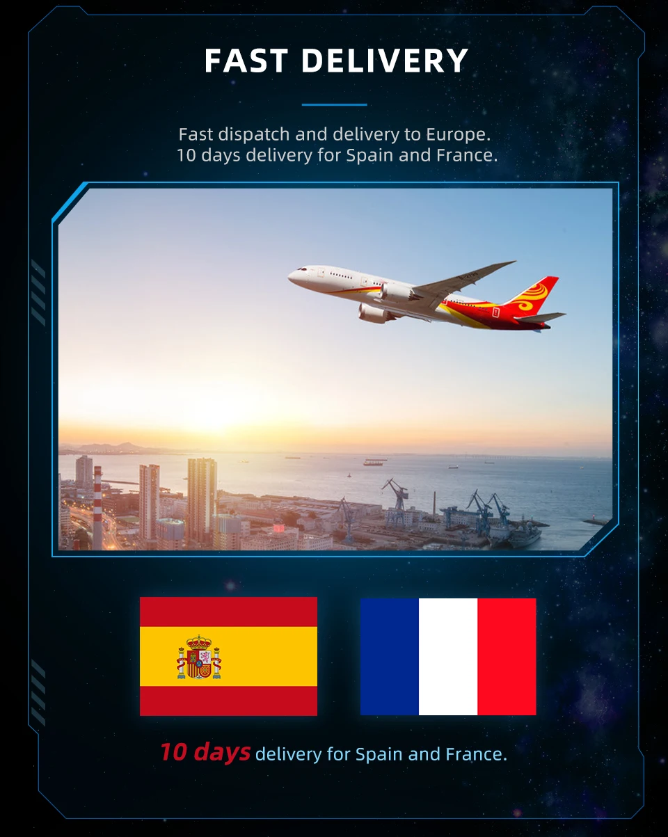 Быстро подготовить к отправке и доставкой в Европу. 10 дней после доставки для Испании и Франции.