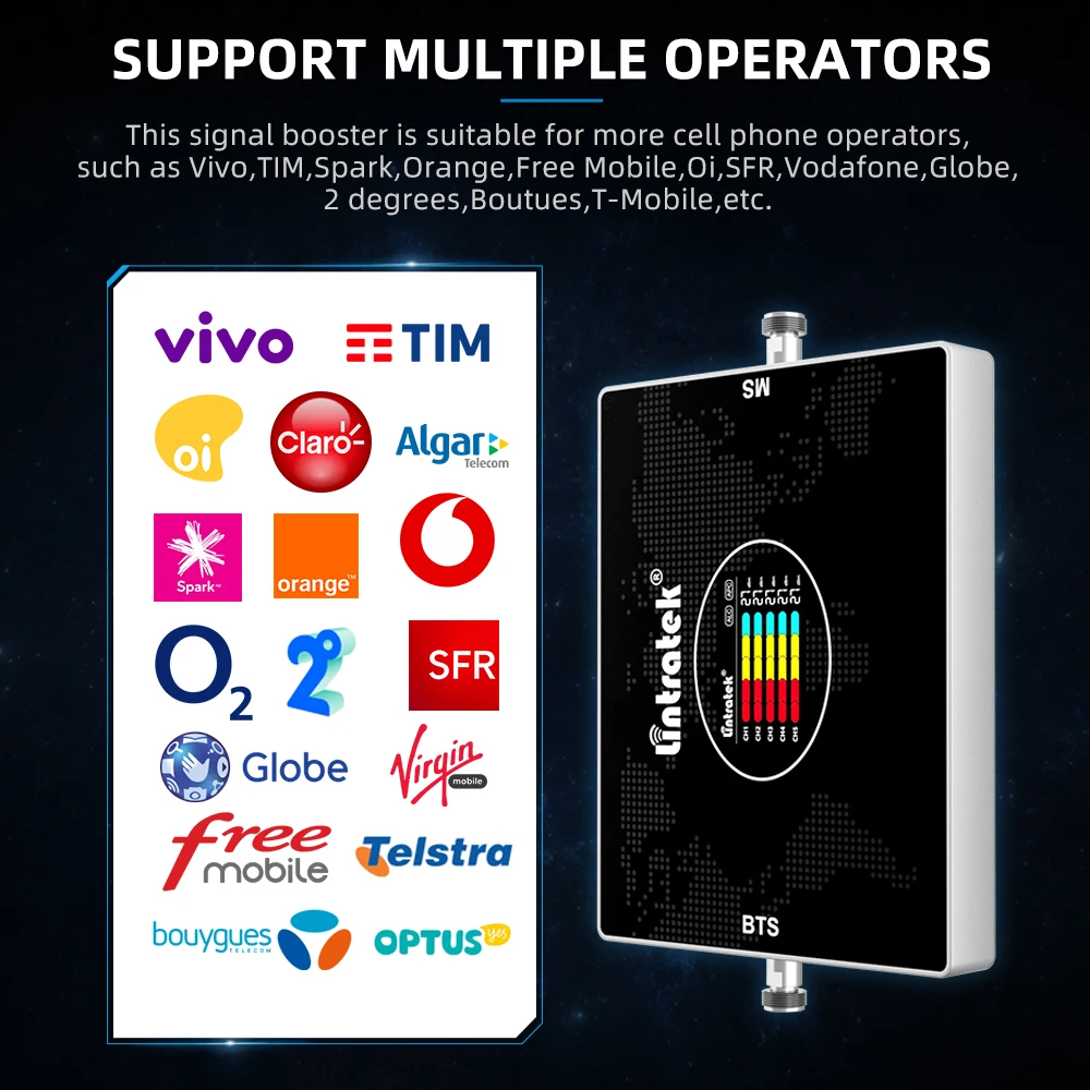 Этот усилитель сигнала подходит для более сотовый телефон операторов, как, например, Vivo, Тим, с искровым зажиганием, оранжевый, Бесплатные мобильные, Oi, SFR, Vodafone, глобус, 2 градуса, Boutues, T-Mobile и т. д.