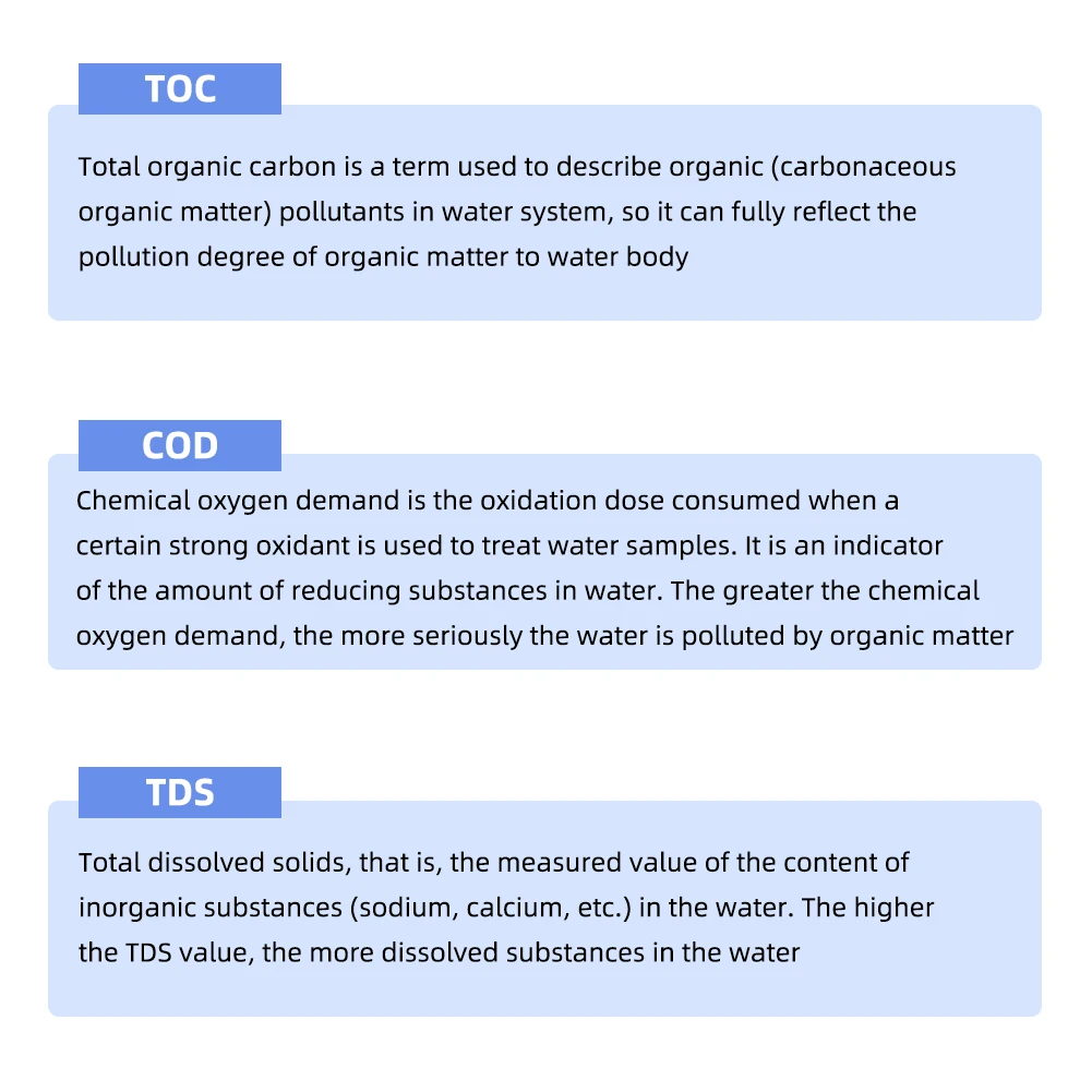 TOC: общий органический углерод является термином, используемым для описания органических (углеродных органических веществ) загрязняющих веществ в водной системе, поэтому он может полностью отражать степень загрязнения органических веществ в водном теле