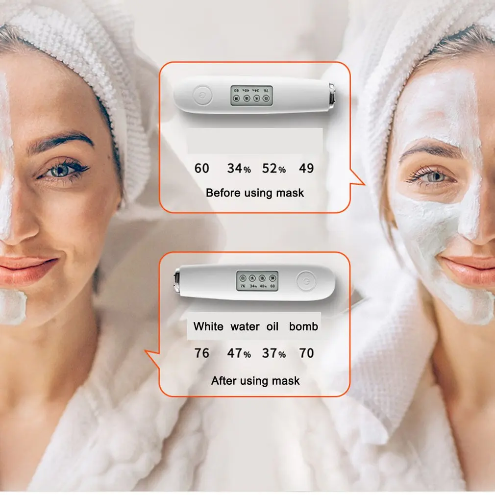 Тестер кожи может проверить подробные данные вашей кожи, так что вы можете выбрать правильный уход за кожей в соответствии с вашим типом кожи, и он легкий и простой в использовании в любое время, где угодно, чтобы проверить состояние кожи.