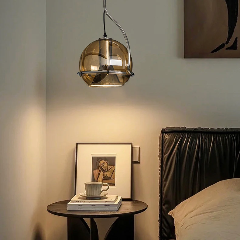 Этот стеклянный подвесной светильник выдувается опытным ремесленником, а ободок абажура гладкий, не повреждая руки.