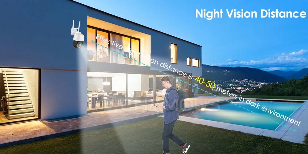 * Модули WiFi антенны этой беспроводной камеры безопасности обеспечивают более стабильное подключение к сети и более широкий диапазон, значительно снижает проблемы с подключением.