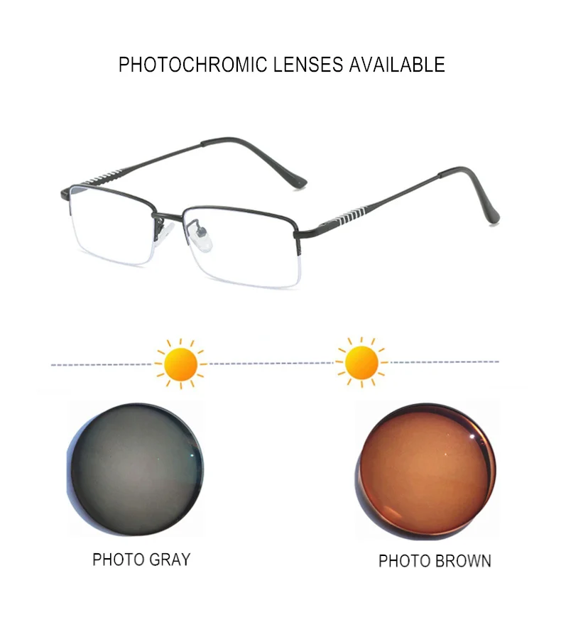 Для фотохромного теста, пожалуйста, проверьте его на солнце, пожалуйста, поместите ваши очки на солнце в течение 3 минут, и вы увидите цвет линз темнеет.