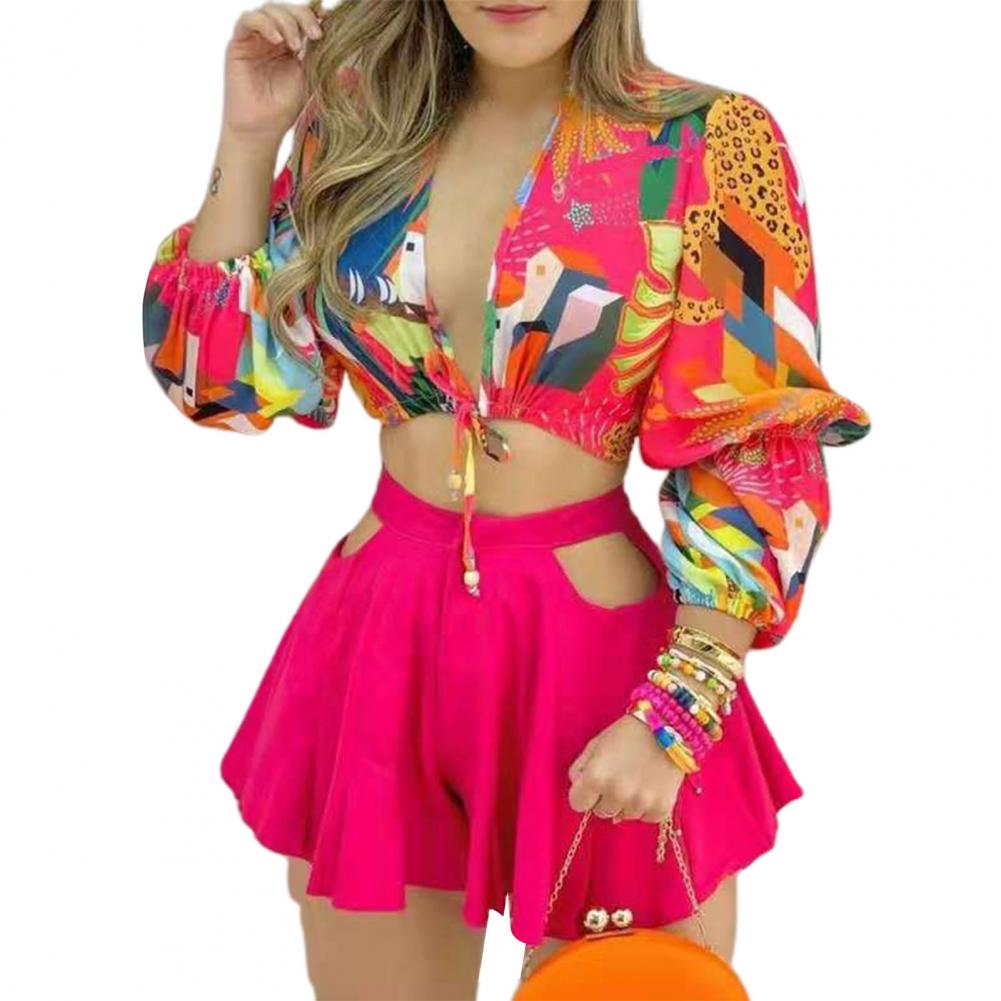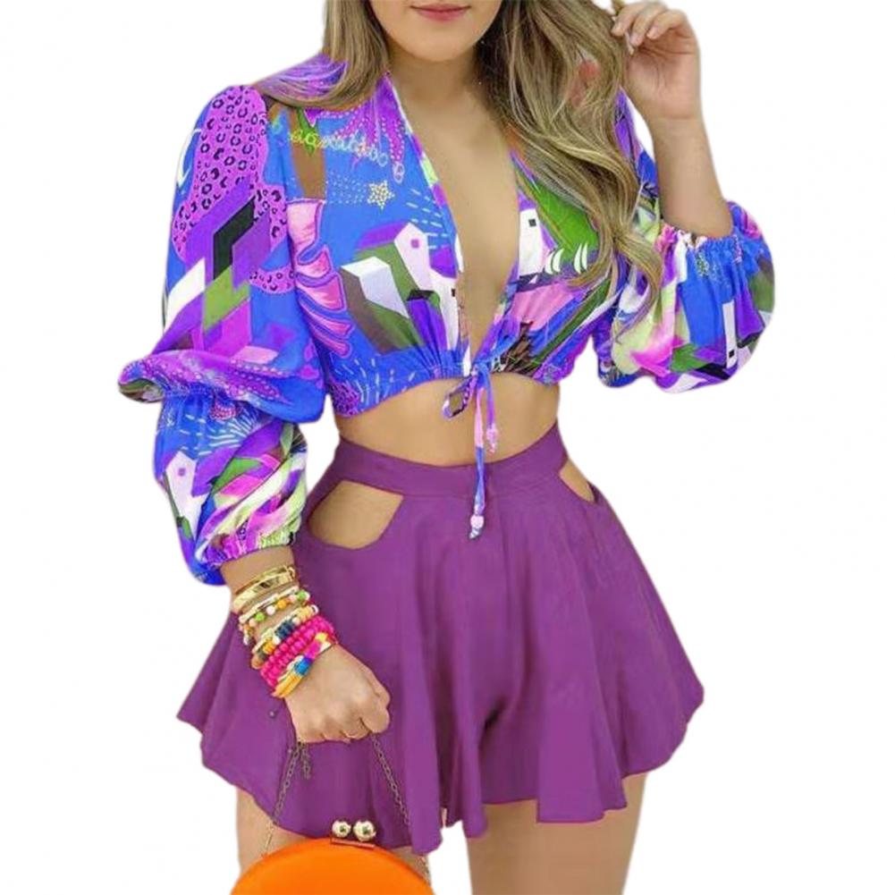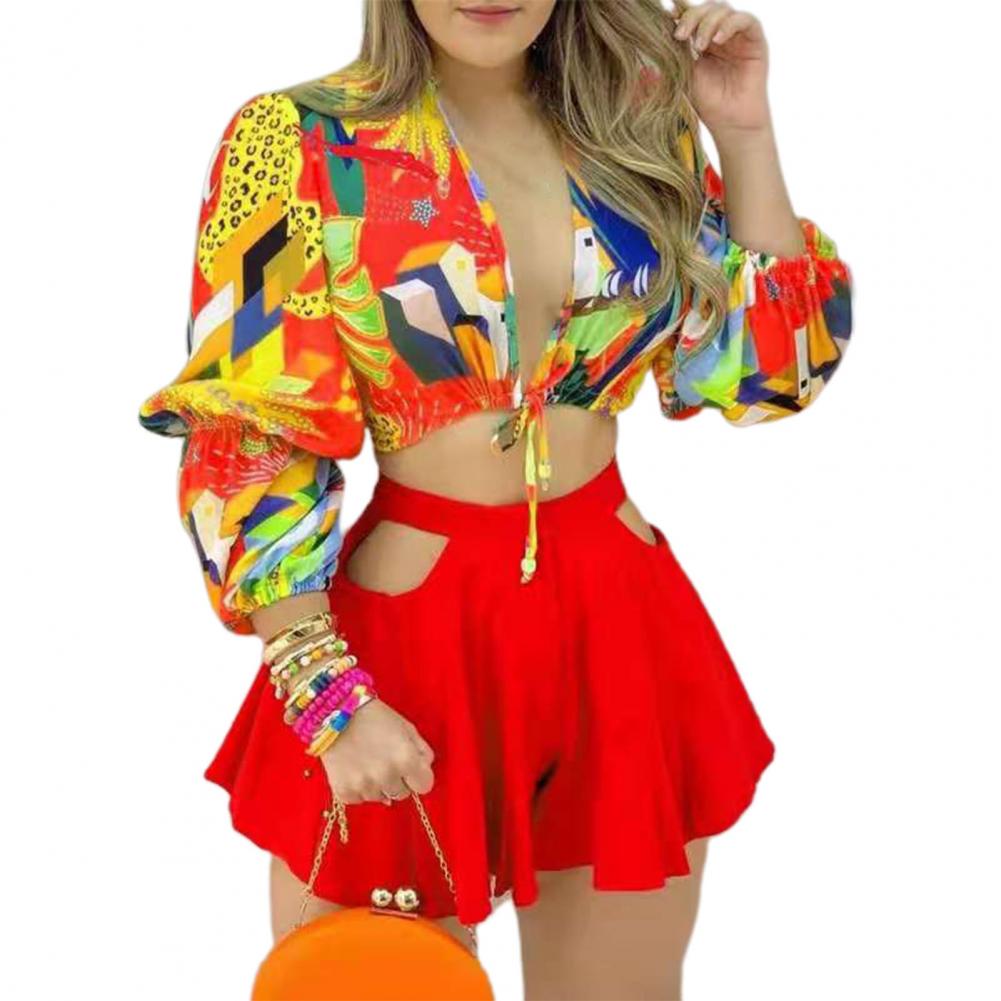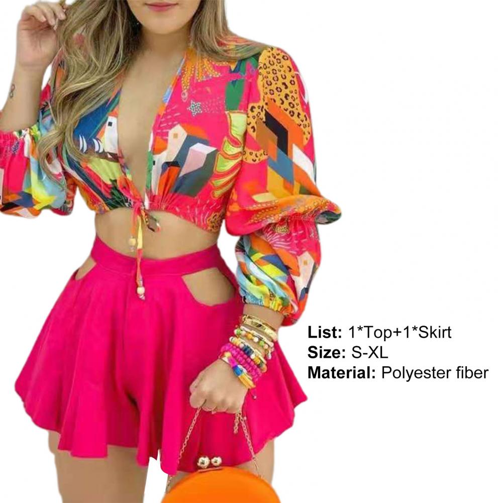 Глубокий v-образный вырез и кроп-топ придают вам сексуальный и очаровательный вид. Дизайн с молнией делает юбку-шорты легко надевать и снимать.