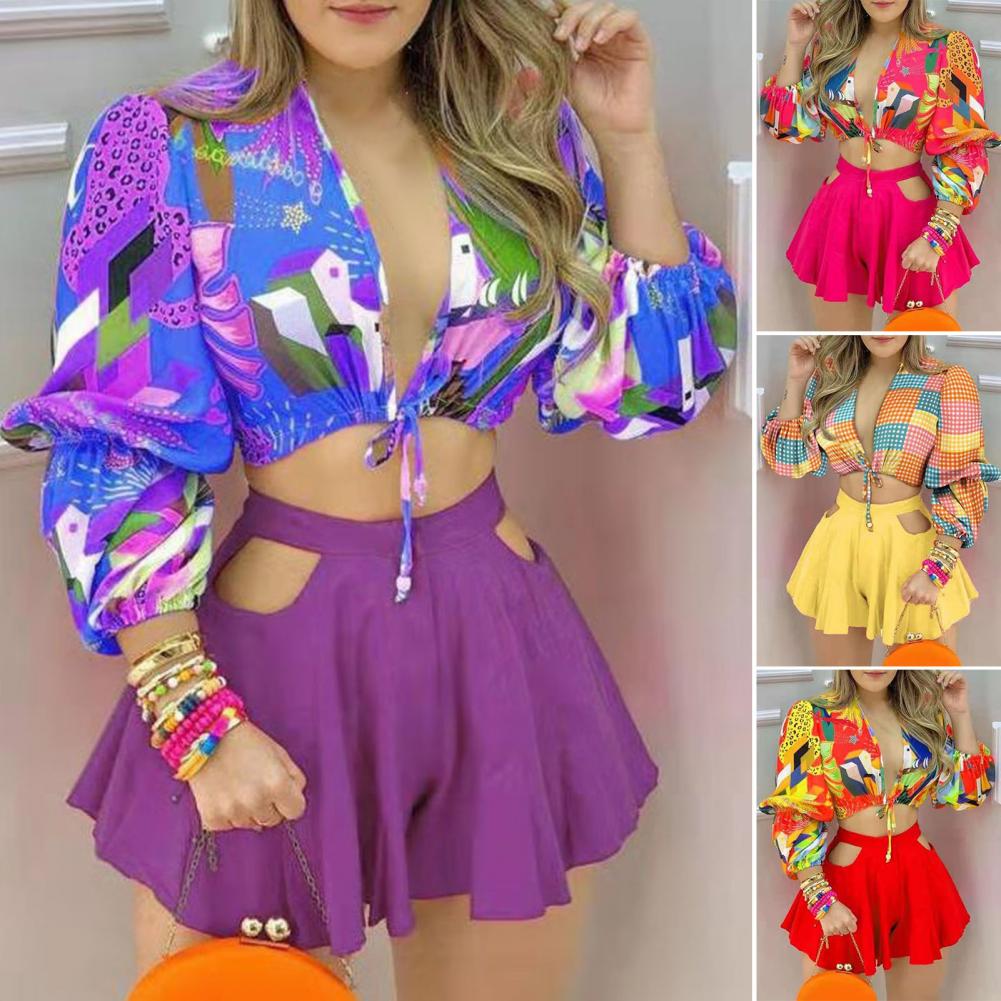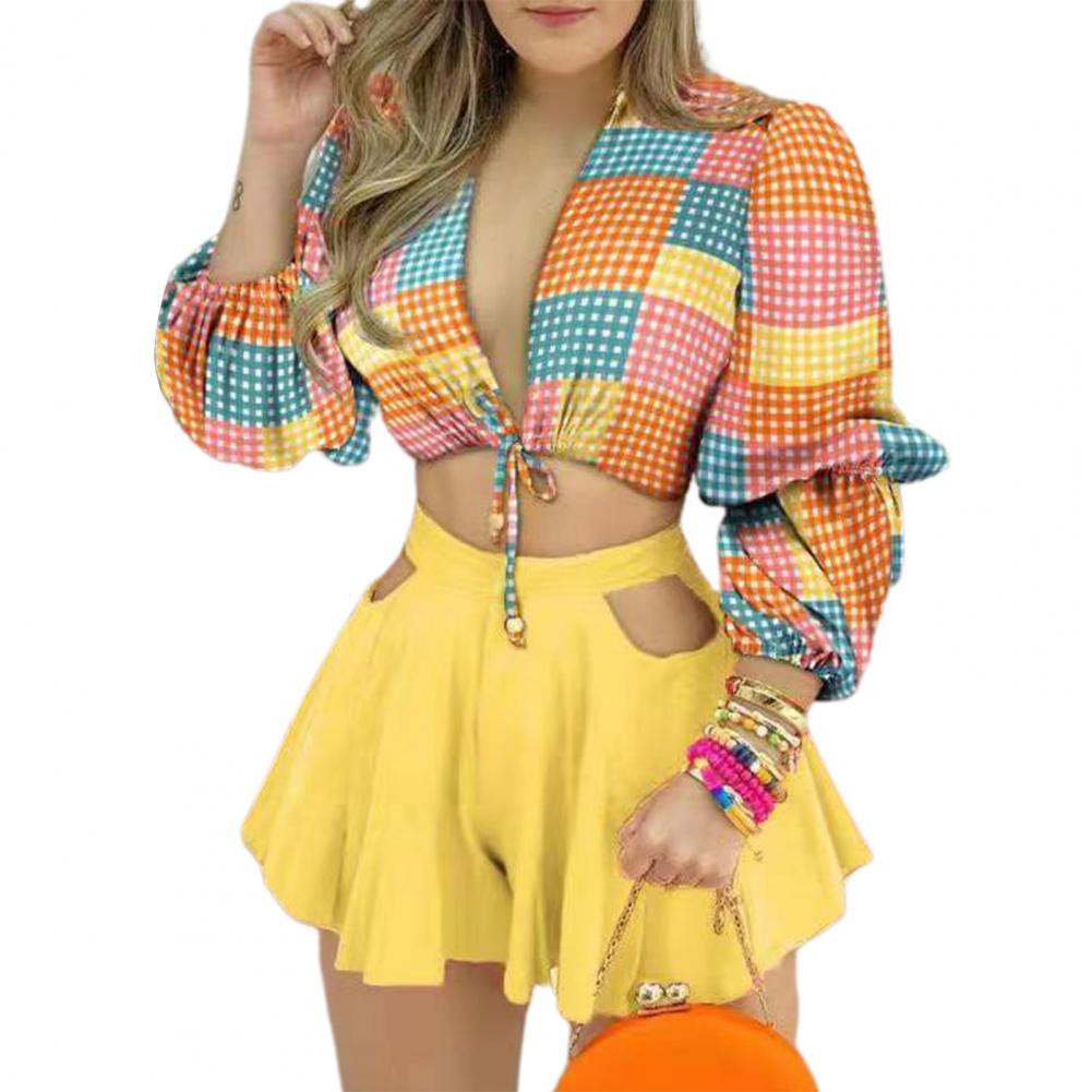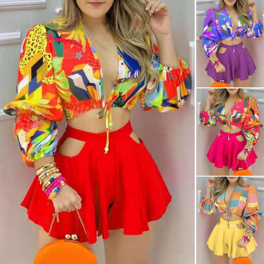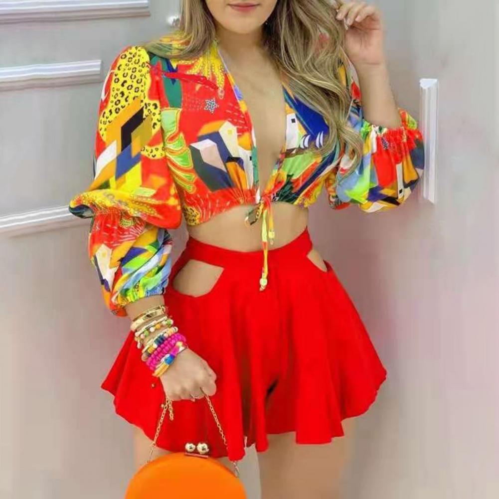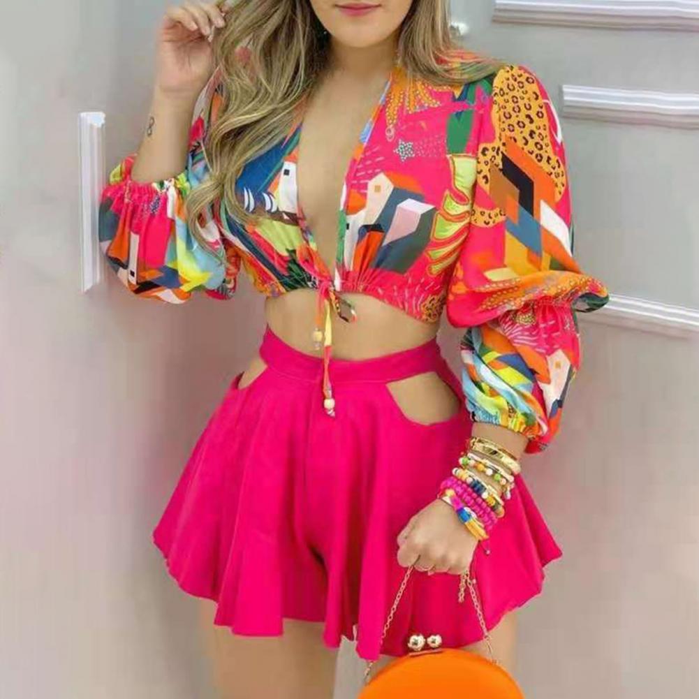 Глубокий v-образный вырез и кроп-топ придают вам сексуальный и очаровательный вид. Дизайн с молнией делает юбку-шорты легко надевать и снимать.