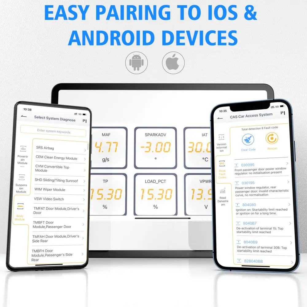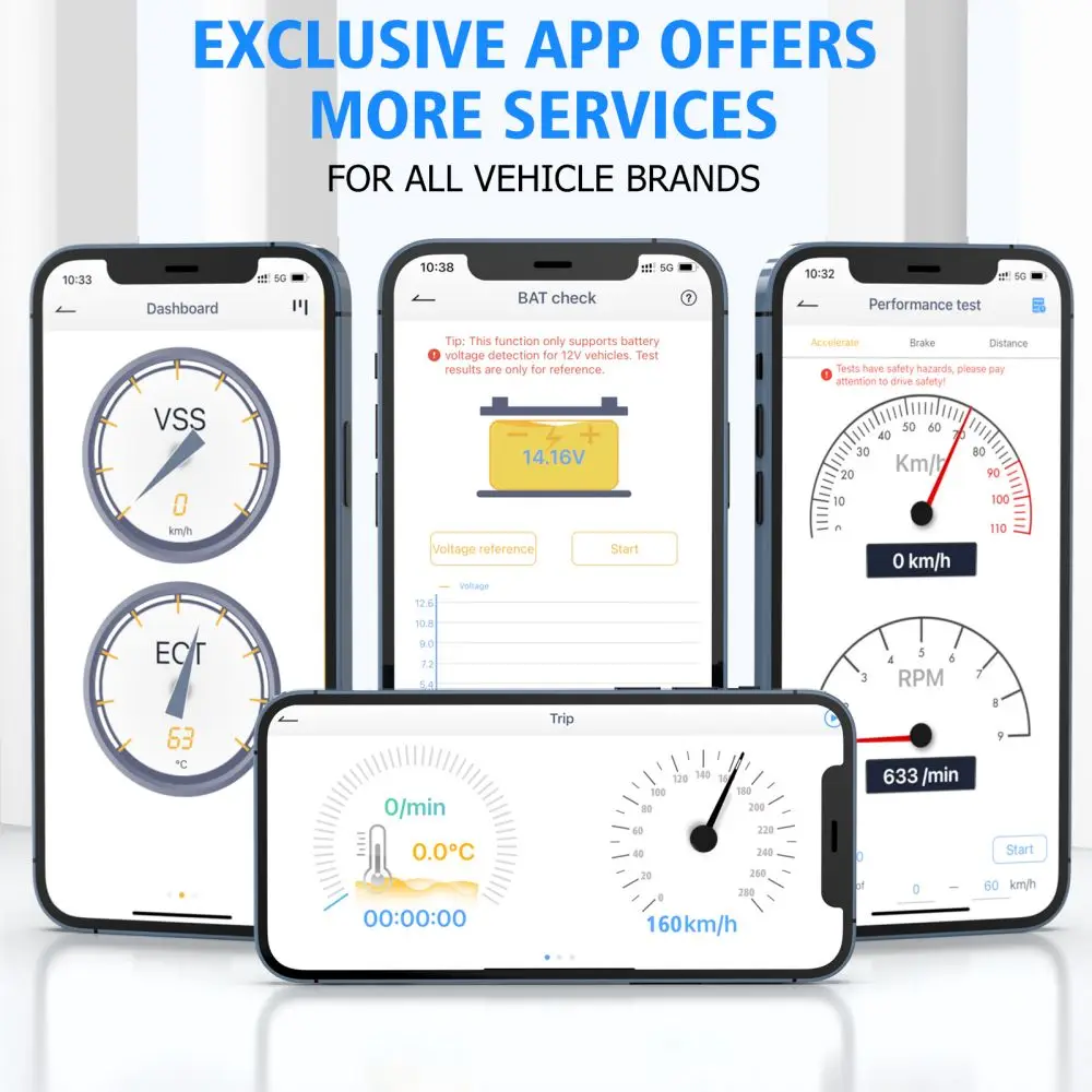 • Поддержка специальных функций (сброс обслуживания, соответствие дроссельной заслонки, замена тормозных колодок, регистрация батареи), бесплатно