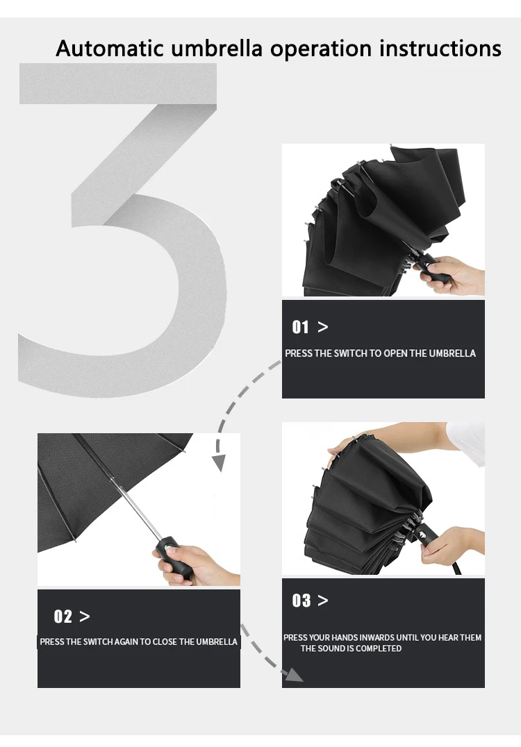 Необходимо высушить зонт, а затем взять его обратно, чтобы лучше защитить зонт.