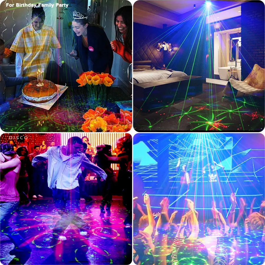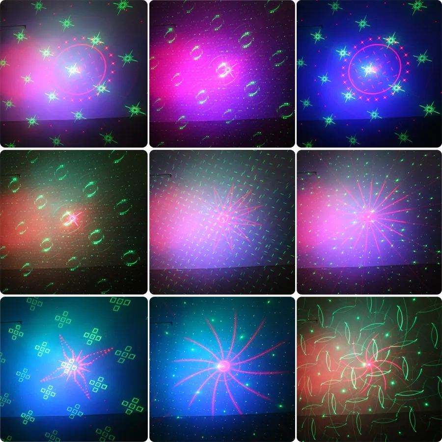 Эффект на светильник:Движущийся красный зеленый лазерный 60 комбинированных шаблонов проектор + RGB светодиодный фоновый эффект, пожалуйста, посмотрите наши фотографии эффектов продукта или наше видео;Примечание: узоры и видео снимаются в дымчатой среде или помещении, некоторые из эффектов (эффект лазерных линий) требуют дымовой машины или суровой среды, которые могут видеть!
