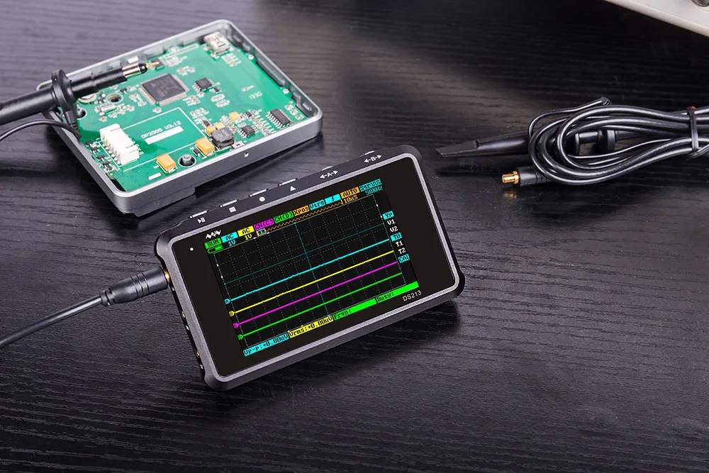 DS213 представляет собой "5-трек, 4-волновой линией" Цифровой запоминающий осциллограф для общего назначения электронные инженерные задачи и базируется на ARM Cortex M3 ядро. DS213 использует FPGA для управления внешним управлением ADC и режимом кэша данных. Он предоставляет 4 раздела приложений для загрузки и обновления до 4 различных прошивки приложений. Он также имеет встроенный usb-накопитель 8 Мб для хранения сигналов и обновления прошивки системы. Слой приложения кода осциллографа является открытым исходным кодом, и пользователи могут разрабатывать прошивку осциллографа в соответствии с их потребностями.